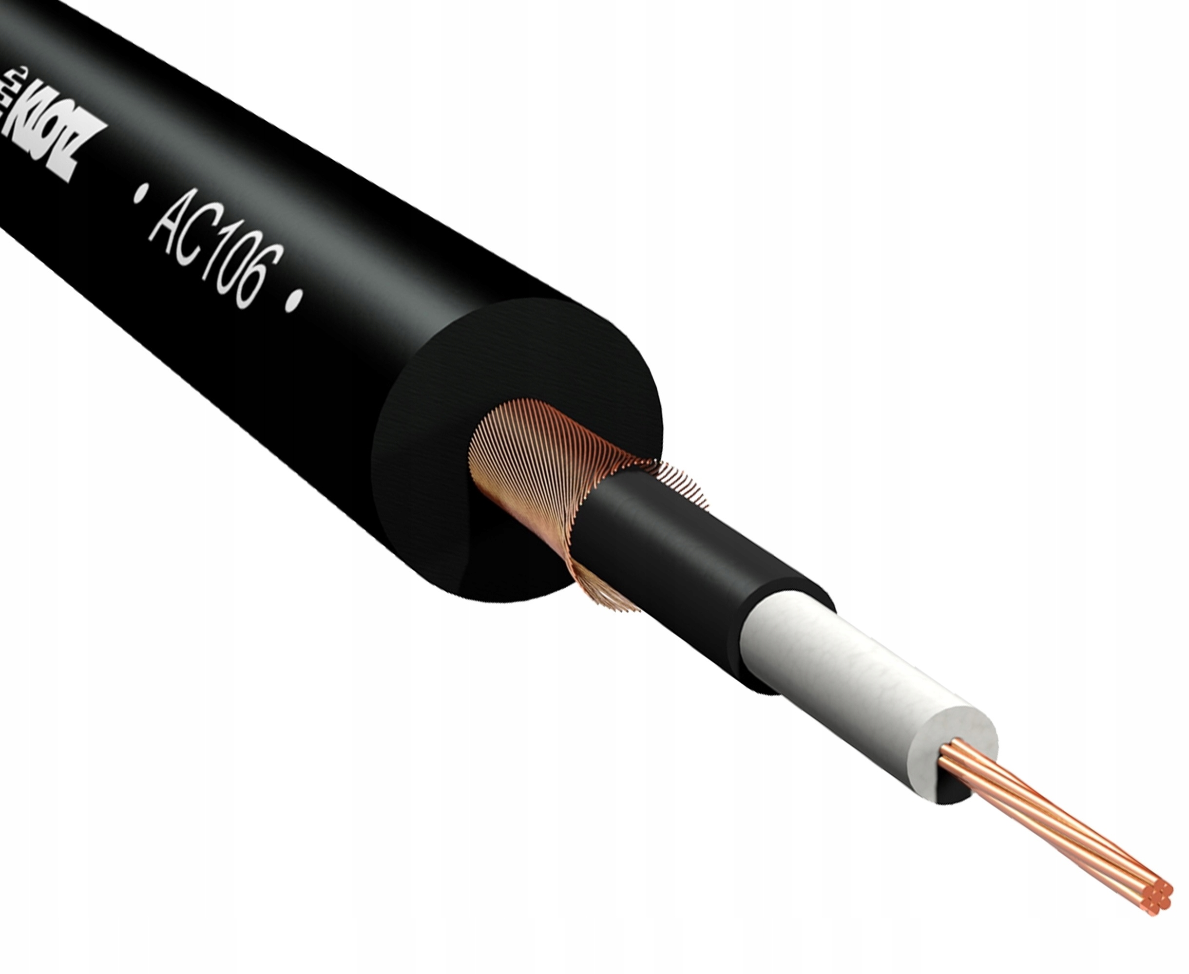 Инструментальный кабель AC106 соответствует требованиям, предъявляемым к кабелям, используемым на сцене. Может использоваться для подключения гитар, микшерных устройств или клавишных инструментов. Усиленная изоляция, двойное экранирование с медным спиральным покрытием, слой проводящего пластика и тонкий пенопласт придают этому кабелю характеристики низкая емкость, устойчивость к помехам и высокая устойчивость к механическим повреждениям.