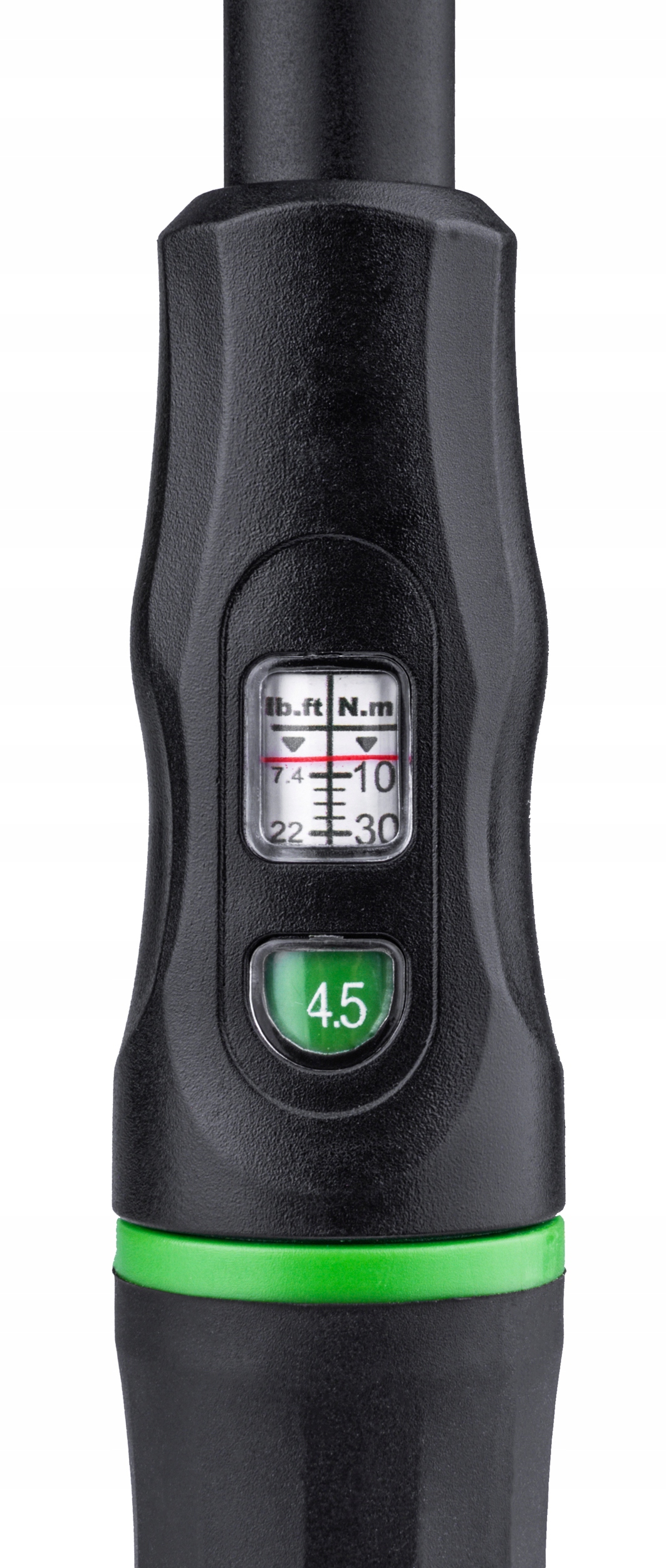 - Чтобы установить соответствующий крутящий момент, обратите внимание на основной масштаб (с красной горизонтальной линией) и точный масштаб (белые цифры на зеленом фоне). Если вы хотите установить 10,5 Нм, красная линия должна быть ниже 10, а дополнительная шкала должна показывать 0,5