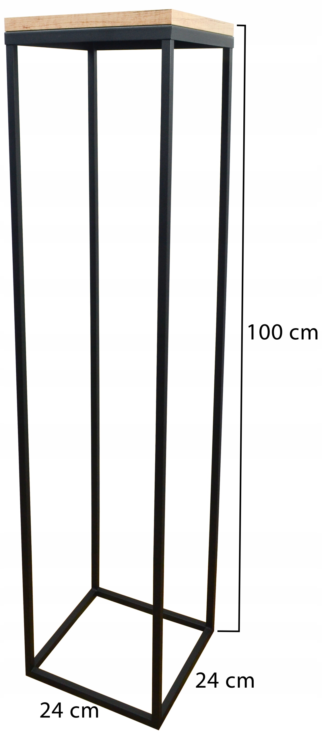 Подставка для цветов из черного металла 100 см со столешницей из золотого дуба