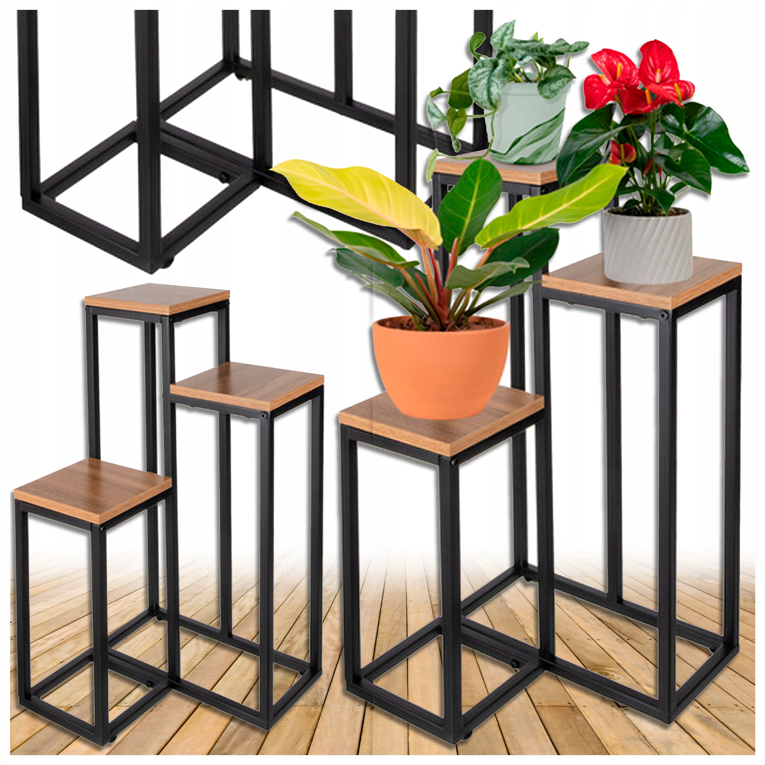 Подставка для цветов и растений, черная металлическая лофт, 3 уровня