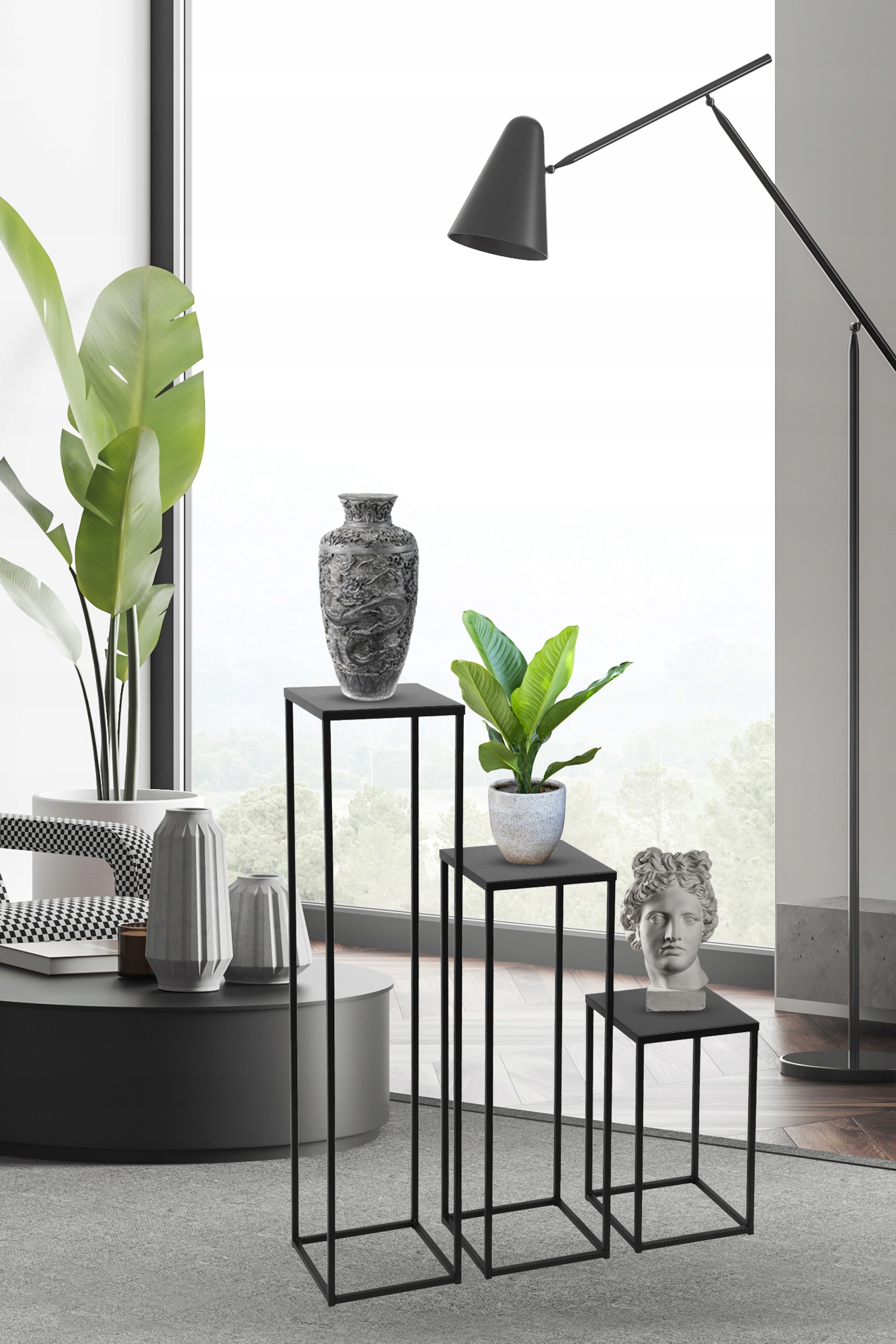 Представляем современную металлическую подставку черного цвета высотой 40 см.