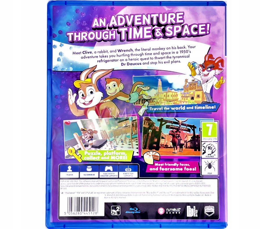 Clive 'n' Wrench — это 3D-платформер, героями которого являются кролик Клайв и сидящая на спине обезьяна Ренч. Ваше приключение перенесет вас сквозь время и пространство в волшебном холодильнике 1950-х годов, и все это для того, чтобы исправить ошибки кузины Клайва, Нэнси, и, наконец, помешать деспотичному доктору Даукусу.