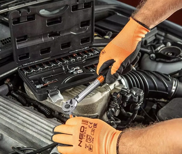 Ключ динамометрический двусторонний 1/4", 5-25Нм, набор 21, 08-821, NEO - незаменимый инструмент в автосервисе, на велосипеде или при домашнем ремонте. Совет Использование ключа позволяет монтировать головки размером 1/4". Ключ позволяет точно регулировать момент затяжки, что особенно важно при профессиональном применении. Благодаря переключателю можно закручивать винты и гайки с правой или левой резьбой, моментом от 5 до 25 Нм. Величину крутящего момента можно регулировать с помощью ручки на рукоятке ключа. В комплект с ключом входит набор самых популярных торцевых головок.