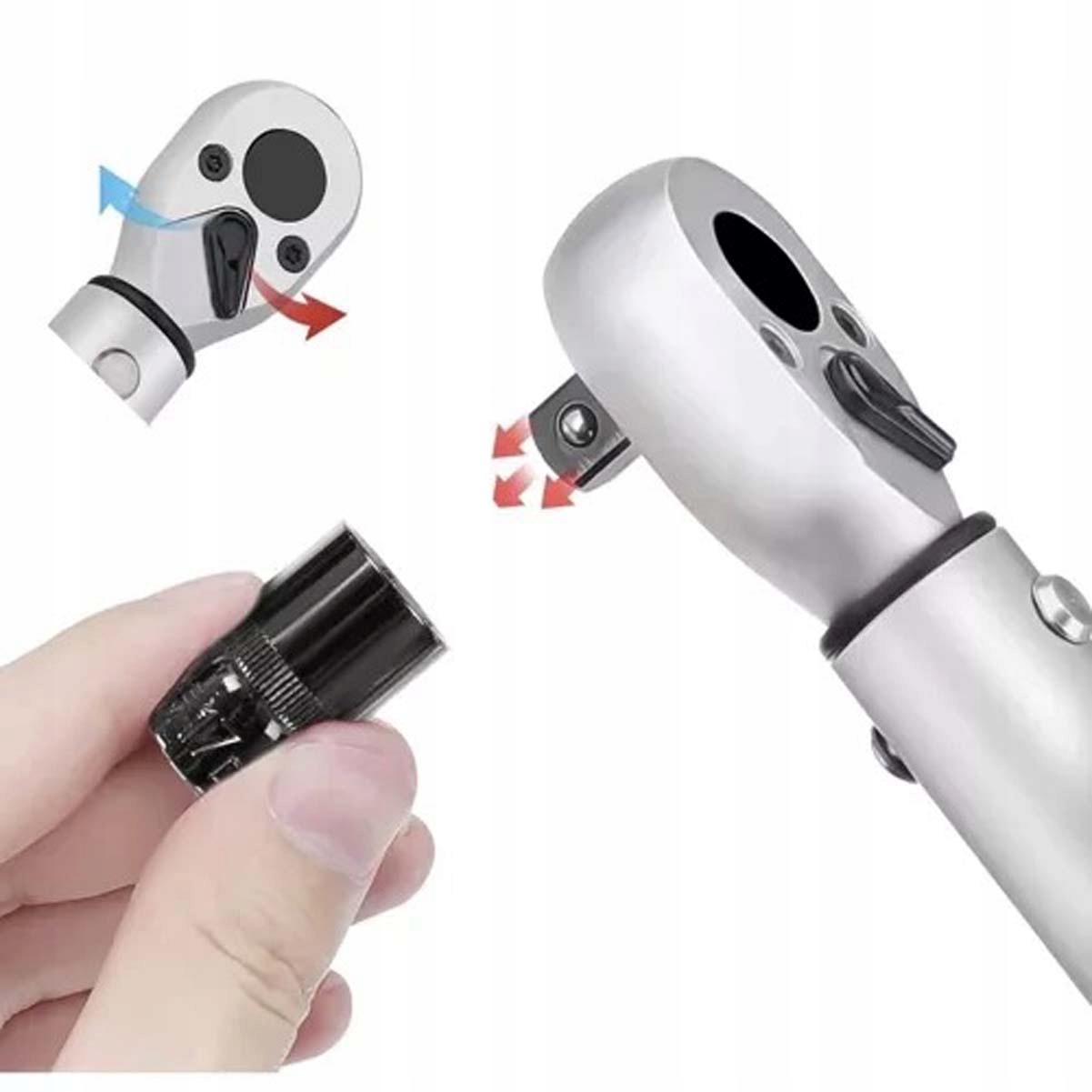 Инструмент с динамометрическим ключом идеально подходит для ослабления и затягивания различных типов винтовых соединений. Многофункциональный ключ с храповым механизмом идеально подойдет для работ, требующих точности и внимательности, а также для повседневной работы с квадратными и шестигранными винтами, мотоциклетными гайками и крючками.