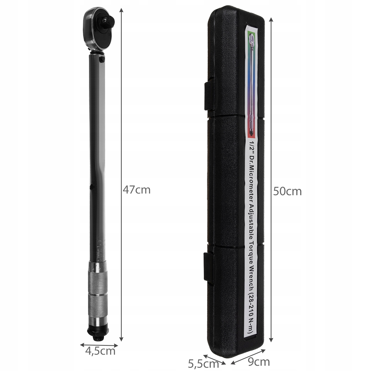 Динамометрический ключ 1/2 дюйма 28–210 Нм + 3 торцевые головки 17/19/21 Корпус замка
