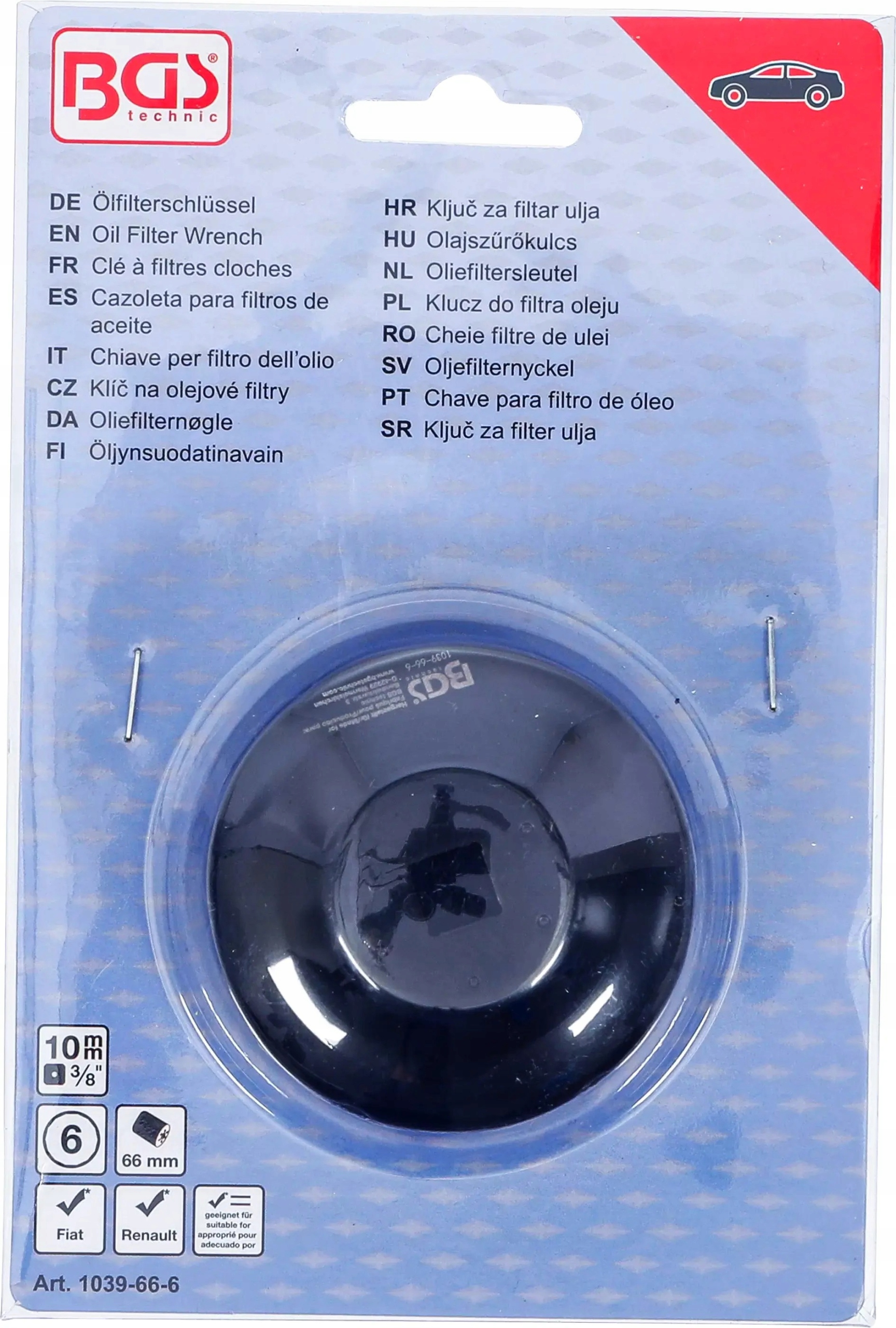 Гаечный ключ-торцевая головка для откручивания шестигранных масляных фильтров диаметром 66 мм, используемых в моделях Фиат и Рено.