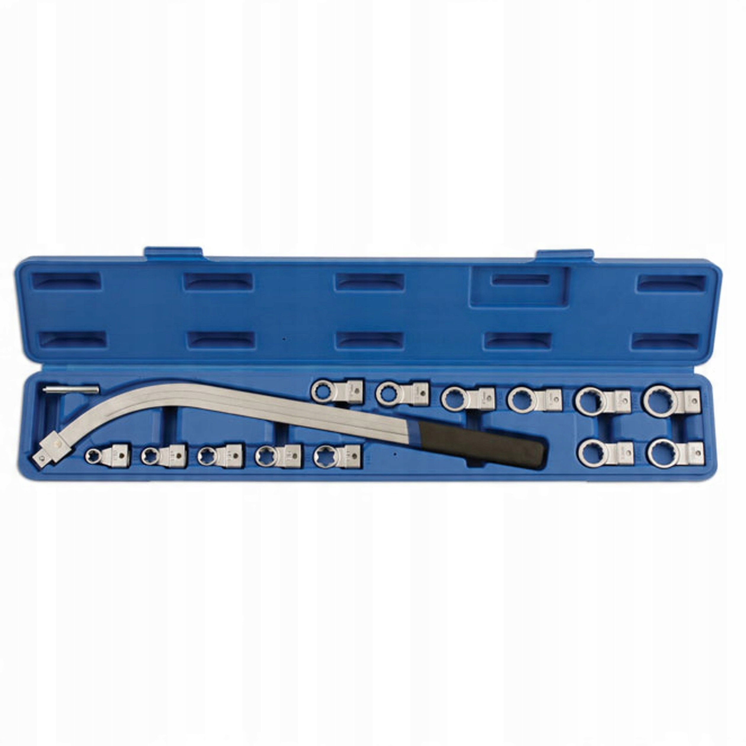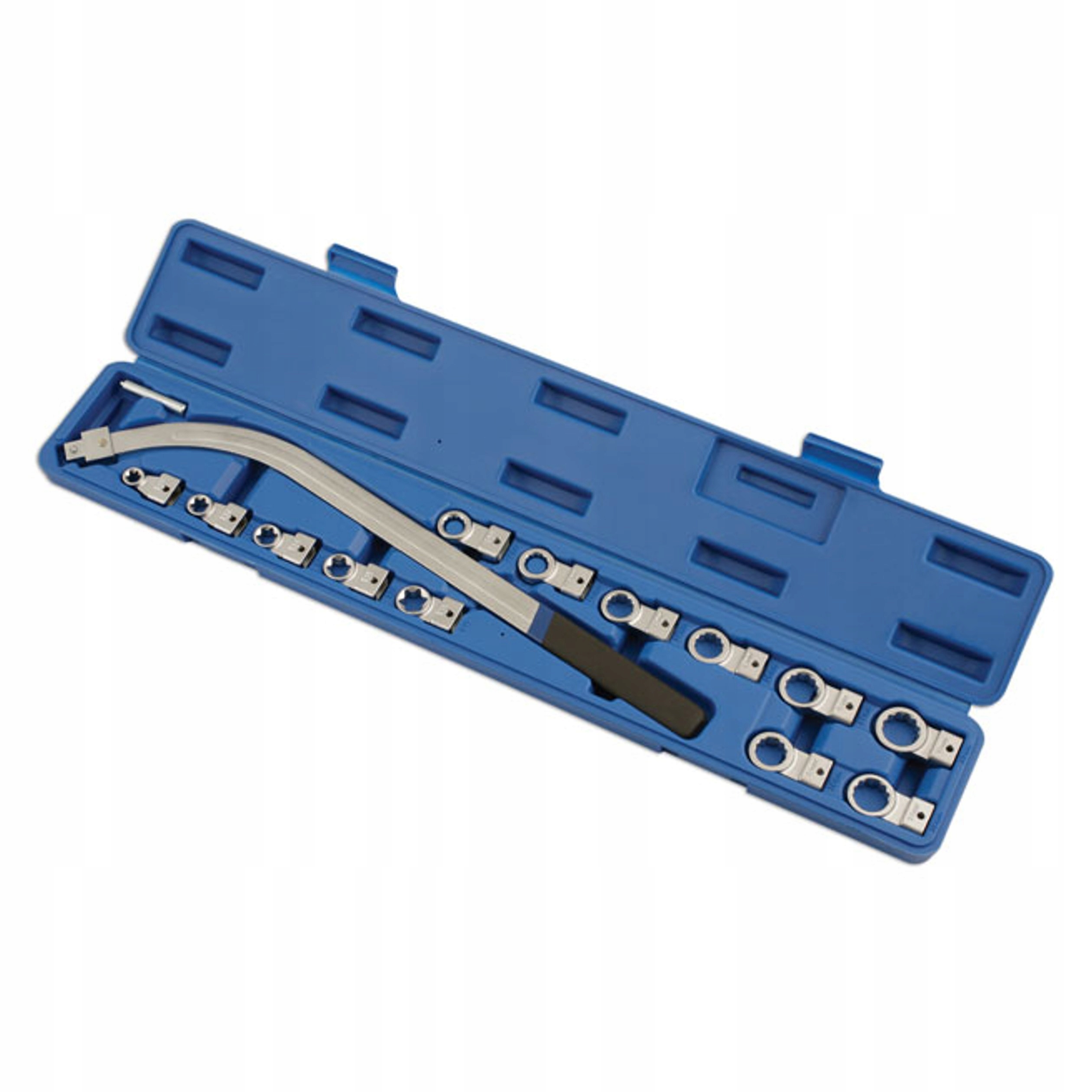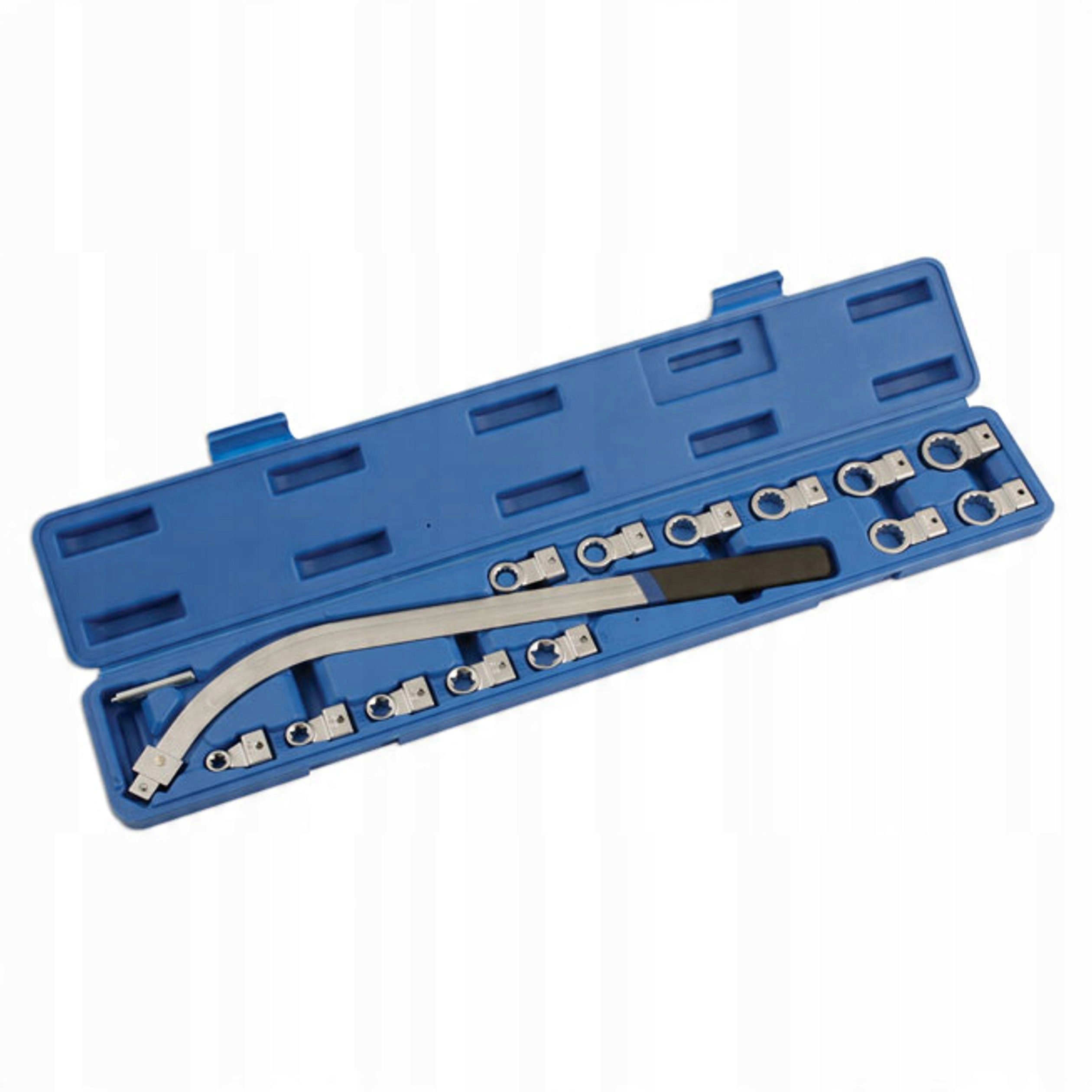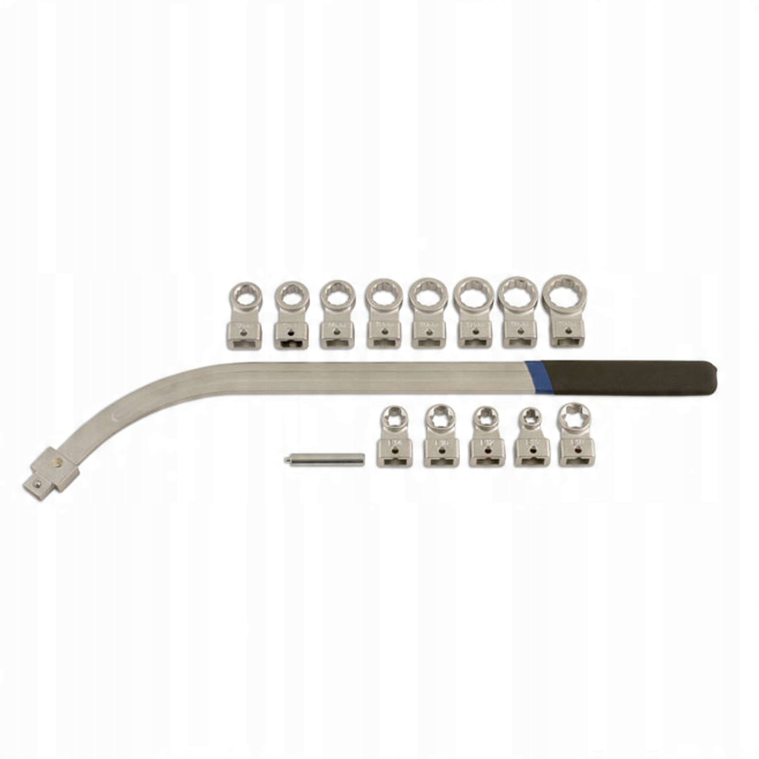 Ключ оснащен заменяемыми советами , которые позволяют адаптировать инструмент к различным задачам. Набор включает в себя советы с размерами 12, 13, 14, 15, 16, 17, 18, 19 мм, а также советами torx : E10, E12, E14, E16, E18. Такое сорт позволяет продукту широко использоваться в работах, связанных с натяжением ремня ГРМ.