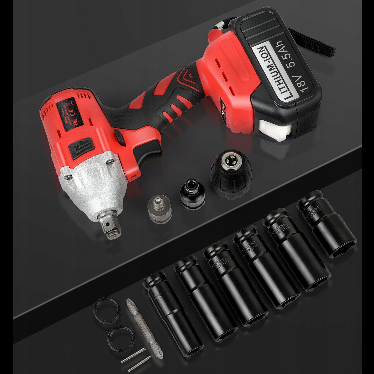 Ключ электрического удара. Сильный ударный ключ 5500 мАч 3200 об / мин 18 В