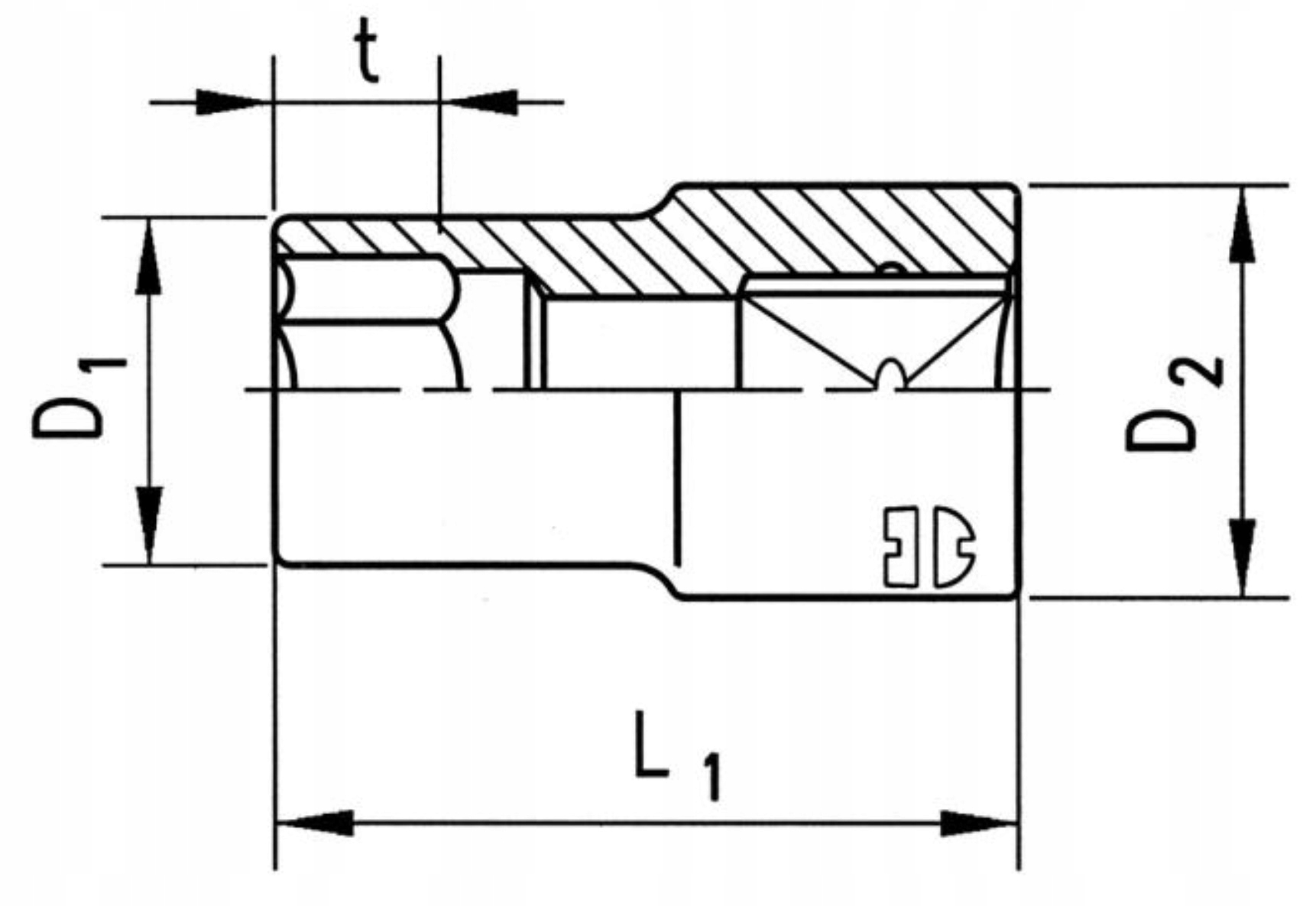 - Внешний диаметр ключа сокета 2 (D2): 25 мм