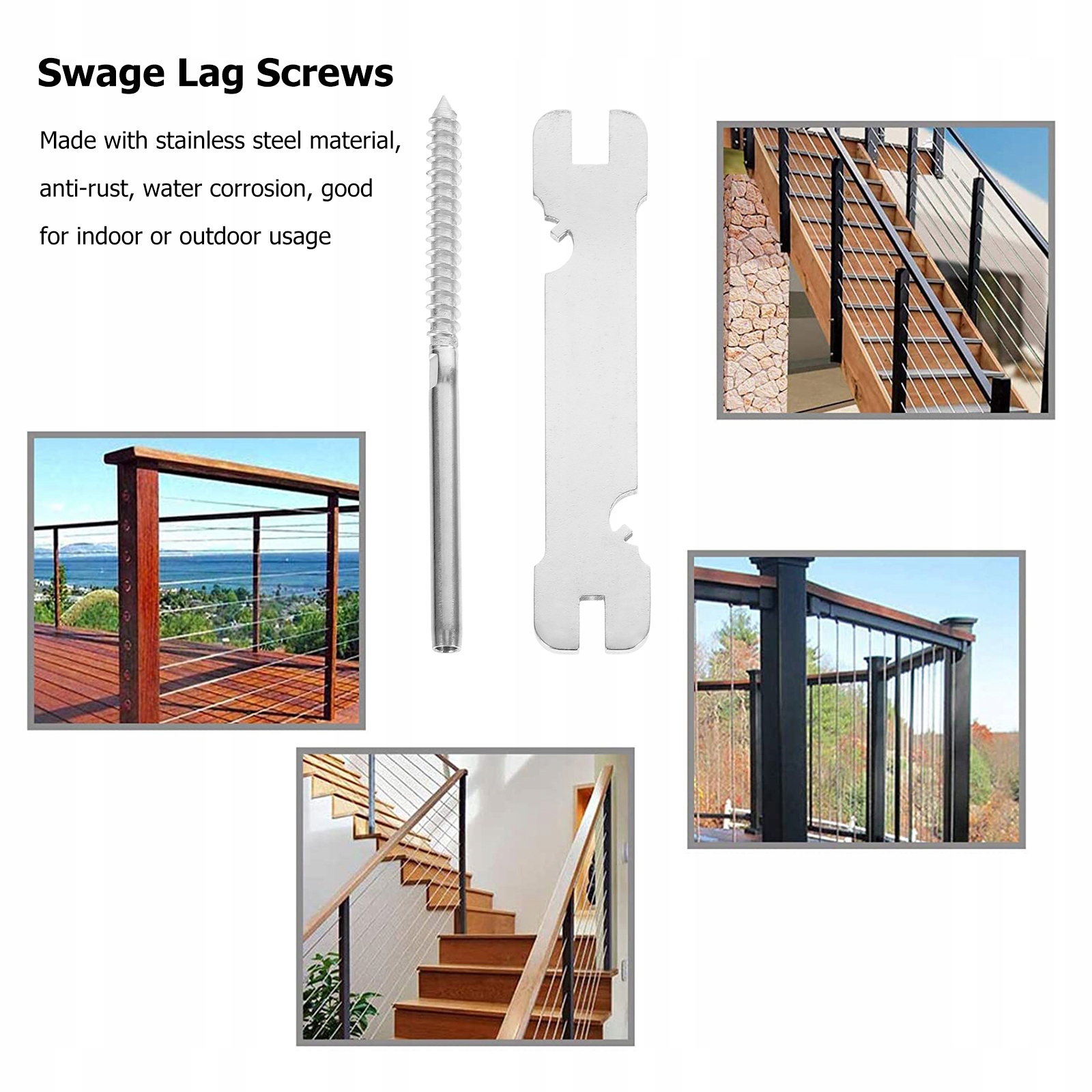 ✅Эти фитинги для перил подходят к тросу системы поручней. Шурупы с резьбой предназначены для деревянных столбов.