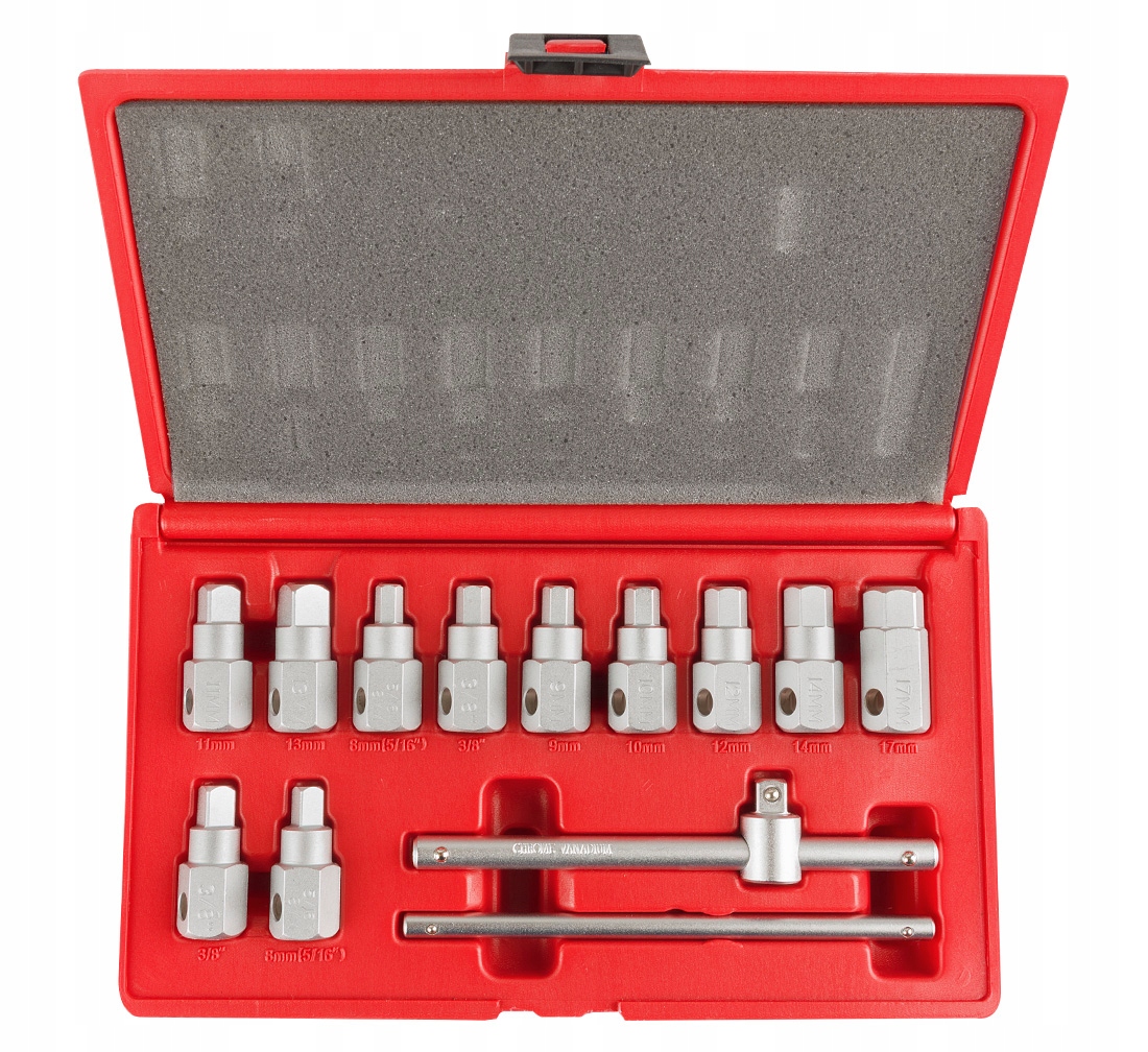 Набор включает в себя специальный ключ с оправданием для прикрепления, но у каждого из них есть отверстия, адаптированные для использования более длинного инструмента для лучшего рычага