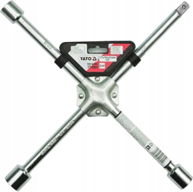 Крестообразный ключ для автомобильных колес. Изготовлен из высококачественной хромованадиевой стали. Он имеет 4 кронштейна с головками, адаптированными для всех шестигранных и метрических типов винтов и гаек, используемых в легковых автомобилях и легких коммерческих автомобилях. Крестовина дополнительно усилена двойным клепаным стальным листом. Повышает безопасность и комфорт использования. Ключ особенно рекомендуется для шиномонтажных предприятий и в качестве оборудования для легковых автомобилей.
