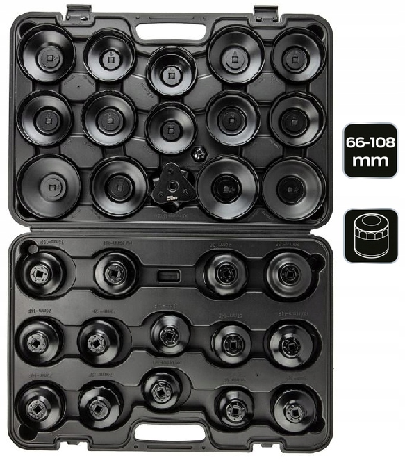 Гаечный ключ разводной - 3-х захватный, переход 3/8" - 1/2", торцевые головки: 6 угловые: 66 мм; 8 угол: 76 мм; Угол 10: 92 мм; 12 угол: 76 мм; 14 углов: 65, 66, 67, 68, 73, 76 мм; 15 углов: 74, 75, 77, 78, 80, 82, 90, 93, 95, 100, 106, 108 мм; 16 угол: 86 мм; 18 угол: 86, 96 мм; Угол 30: 76 мм; Угол 36: 93 мм; Угол 45: 93 мм. Торцевые ключи для масляных фильтров - набор из 30 штук NEO для профессиональных мастерских и автосервисов, а также для продвинутых любителей. Набор торцевых ключей с торцевой конструкцией. Их используют для откручивания металлических масляных фильтров в автомобилях. Помимо ключей в комплект также входит разводной трехплечий ключ и переходник от 3/8 до 1/2 дюйма. Набор находится в специальном чемоданчике, у каждого элемента есть обозначенное место, что позволяет легче поддерживать порядок и быстро находить необходимую розетку.