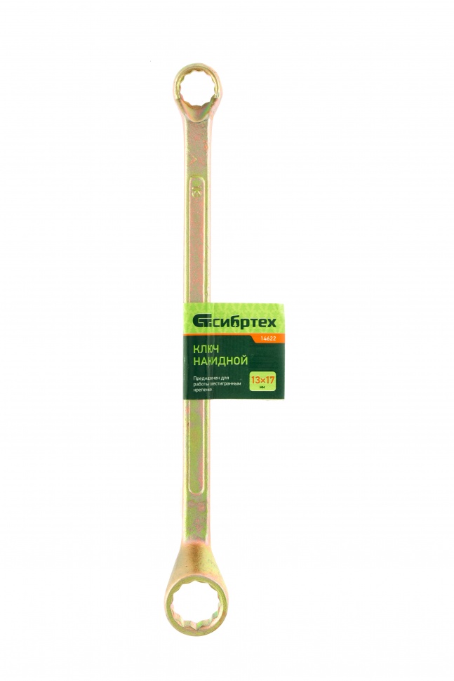 - Ключ накидной Сибртех с желтым цинковым покрытием предназначен для сборки и разборки резьбовых соединений с шестигранной головкой диаметром 13 и 17 мм.