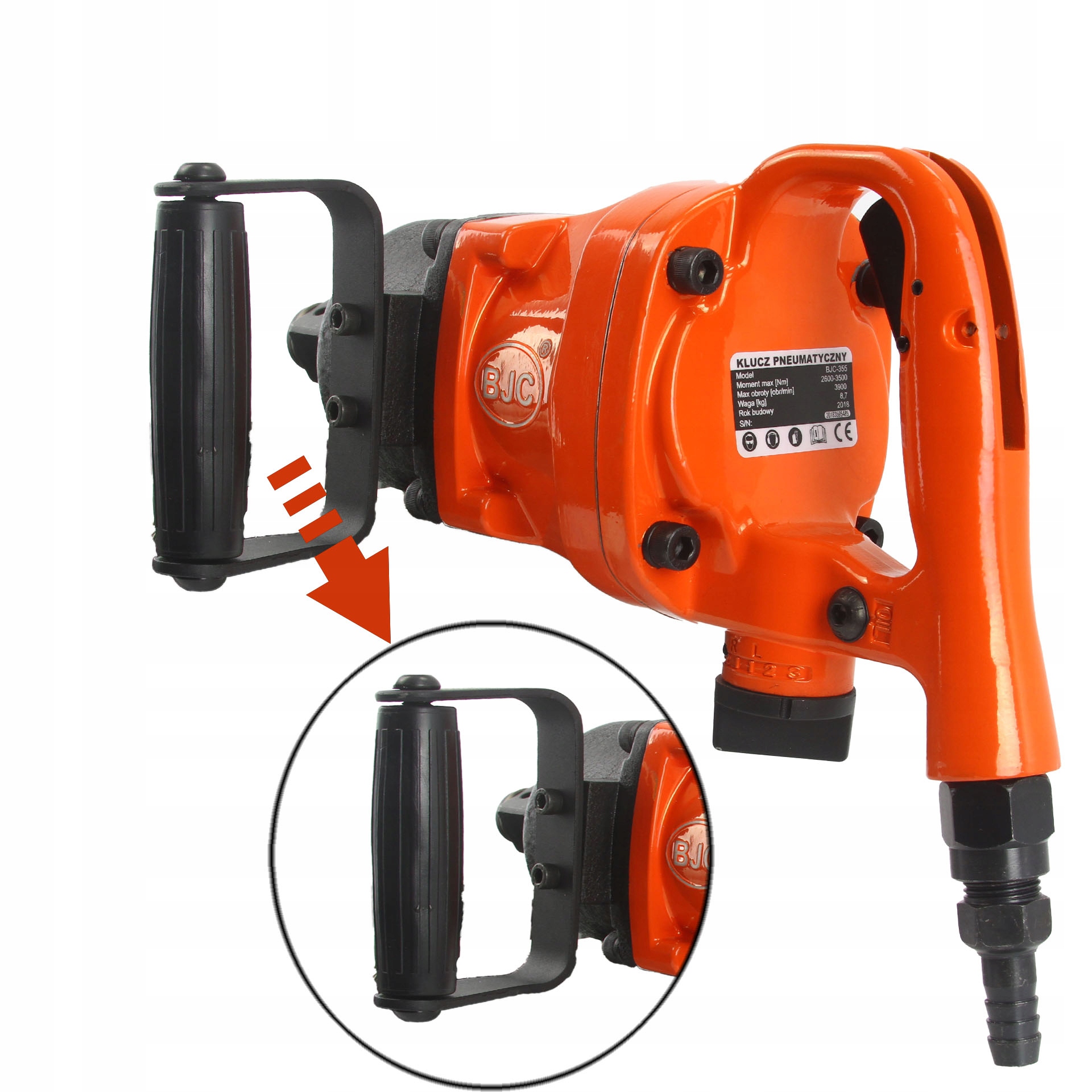 Пневматический ударный гайковерт BJC 355 оснащен удобной рукояткой для удержания ключа.