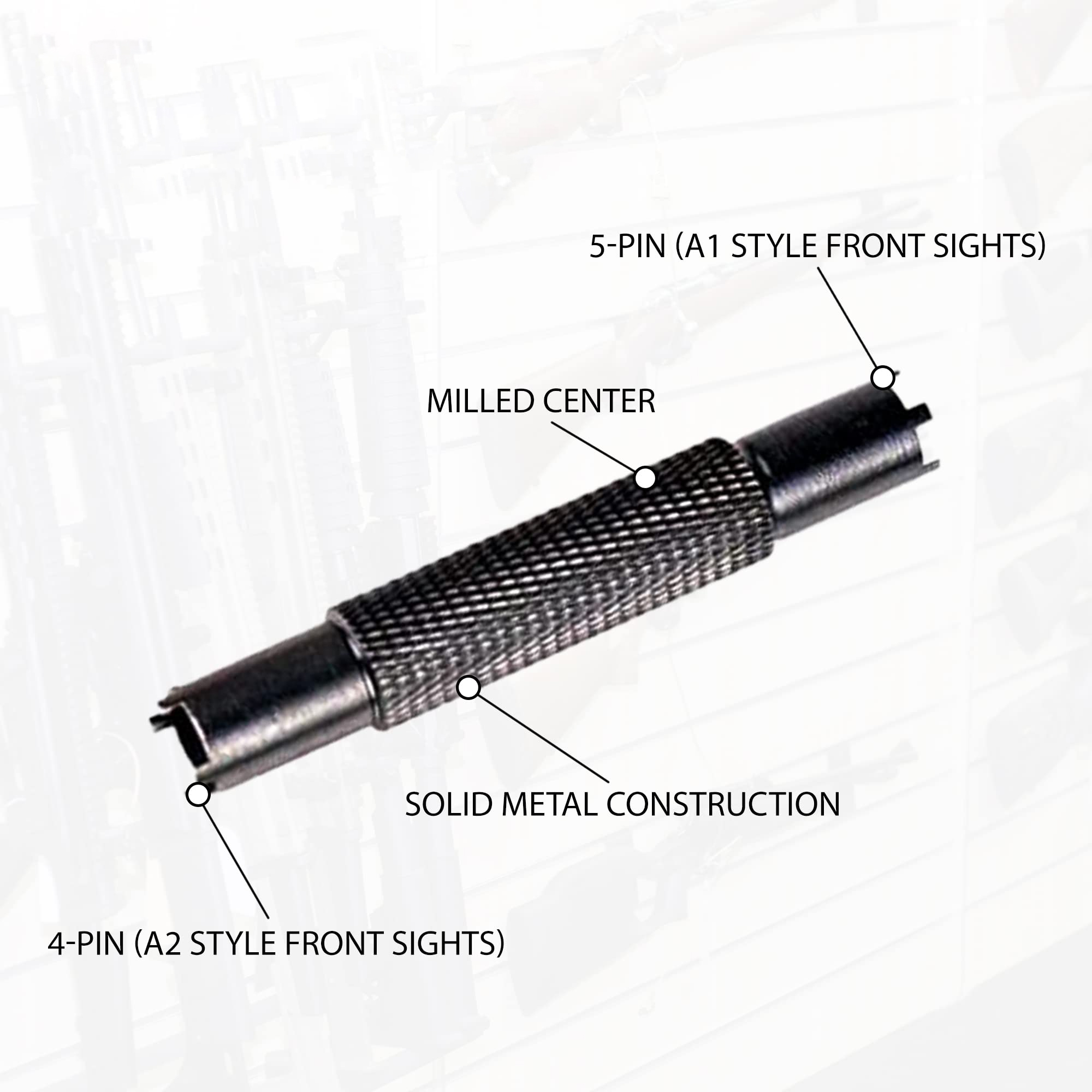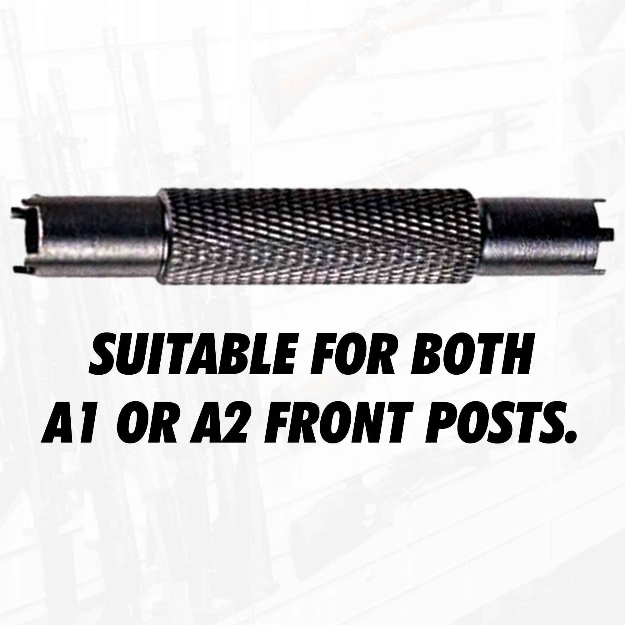 Регулирует высоту мушек A1 с 5 насечками и A2 с 4 насечками — даже на складные прицельные приспособления с более высокими выступами по обеим сторонам прицельной стойки.