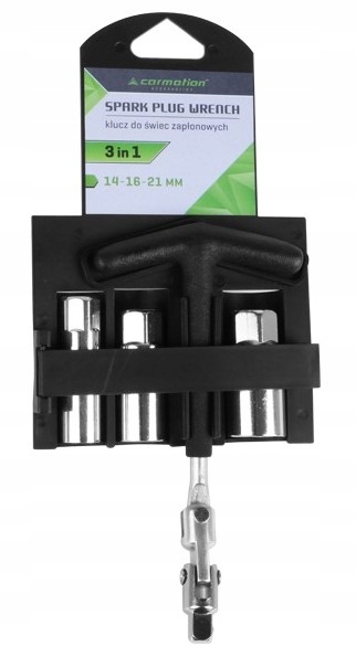 - Свечный ключ 3 в 1 с головками 14 мм, 16 мм и 21 мм.< /li>