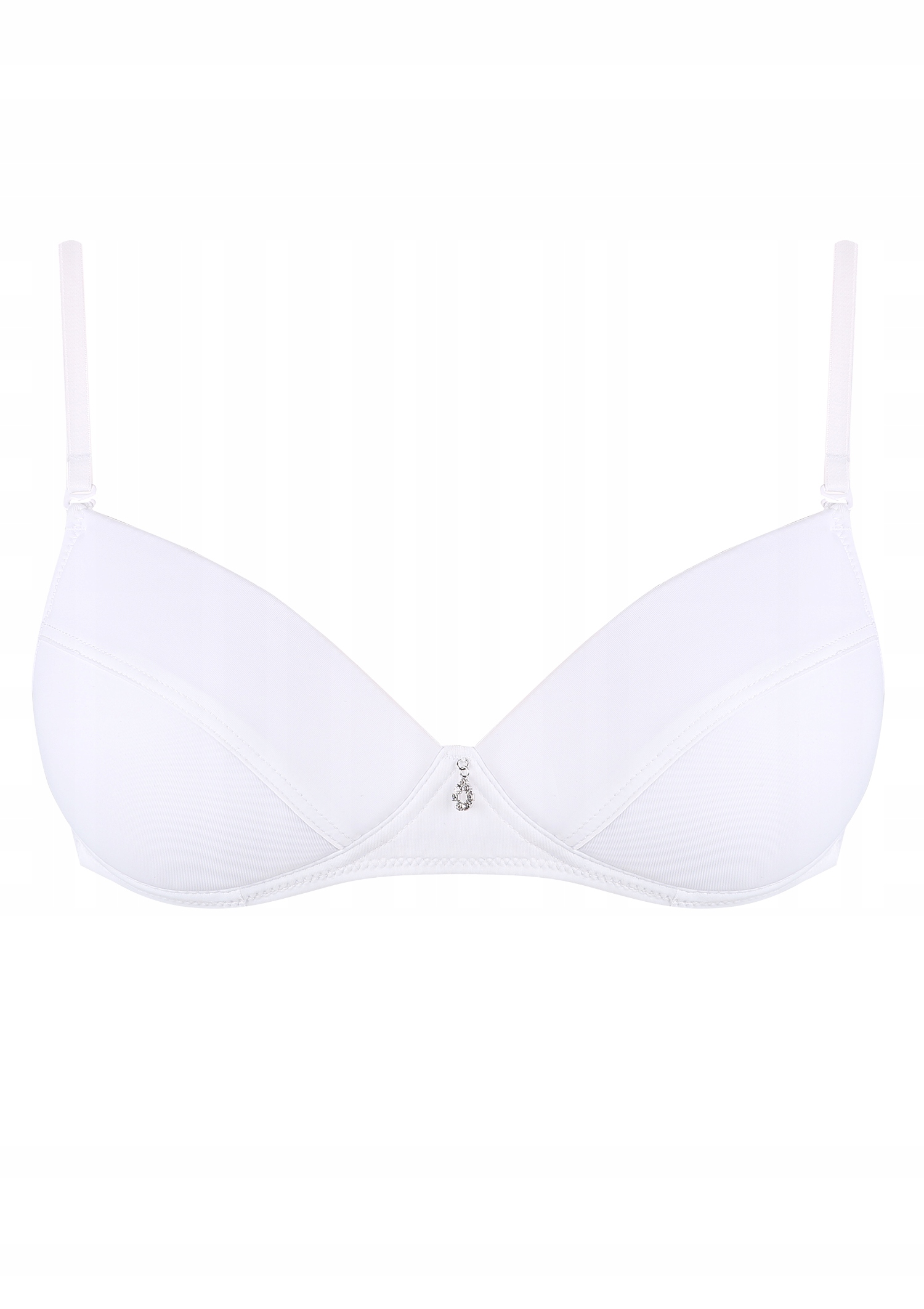 Одноцветный бюстгальтер для подростков. Бретельки в цвет бюстгальтера. Очаровательная деталь в виде крошечного кулона привлекает внимание. Бюстгальтер имеет жесткие чашки и съемные бретели. Чашечки усилены благодаря толстой мягкой губке и специальной строчке вместо косточек. Удобно носить – никаких металлических косточек. Идеальный крой для подростков 11–15 лет.