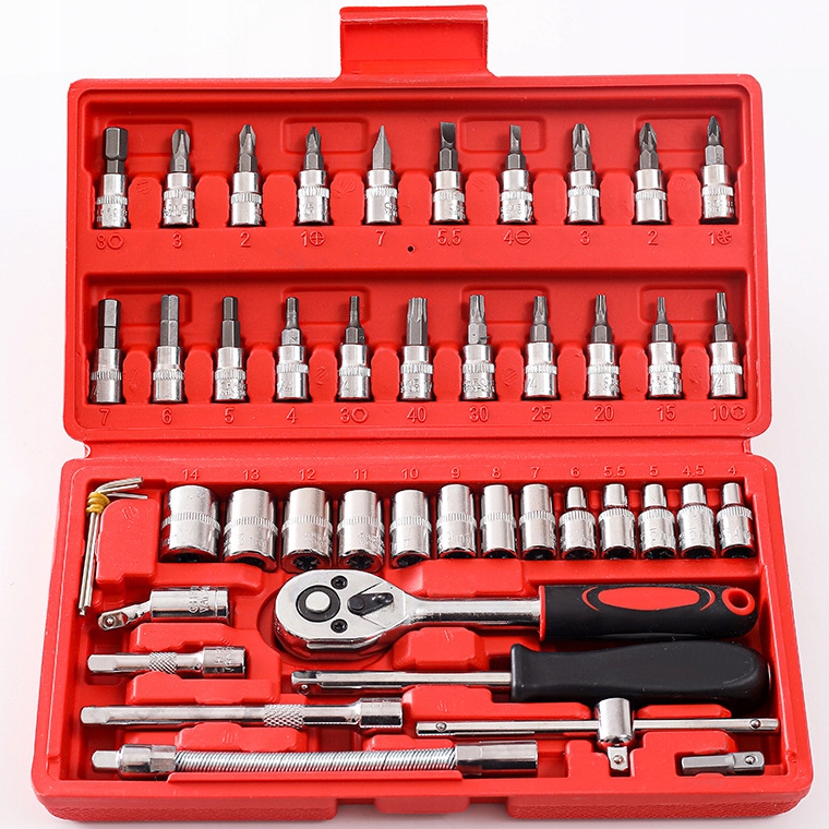 Кейс обеспечивает безопасное хранение, каждый элемент имеет свое описанное место, поэтому найти нужную розетку или ключ не составит проблем, и вся вещь не потеряется.< /п>