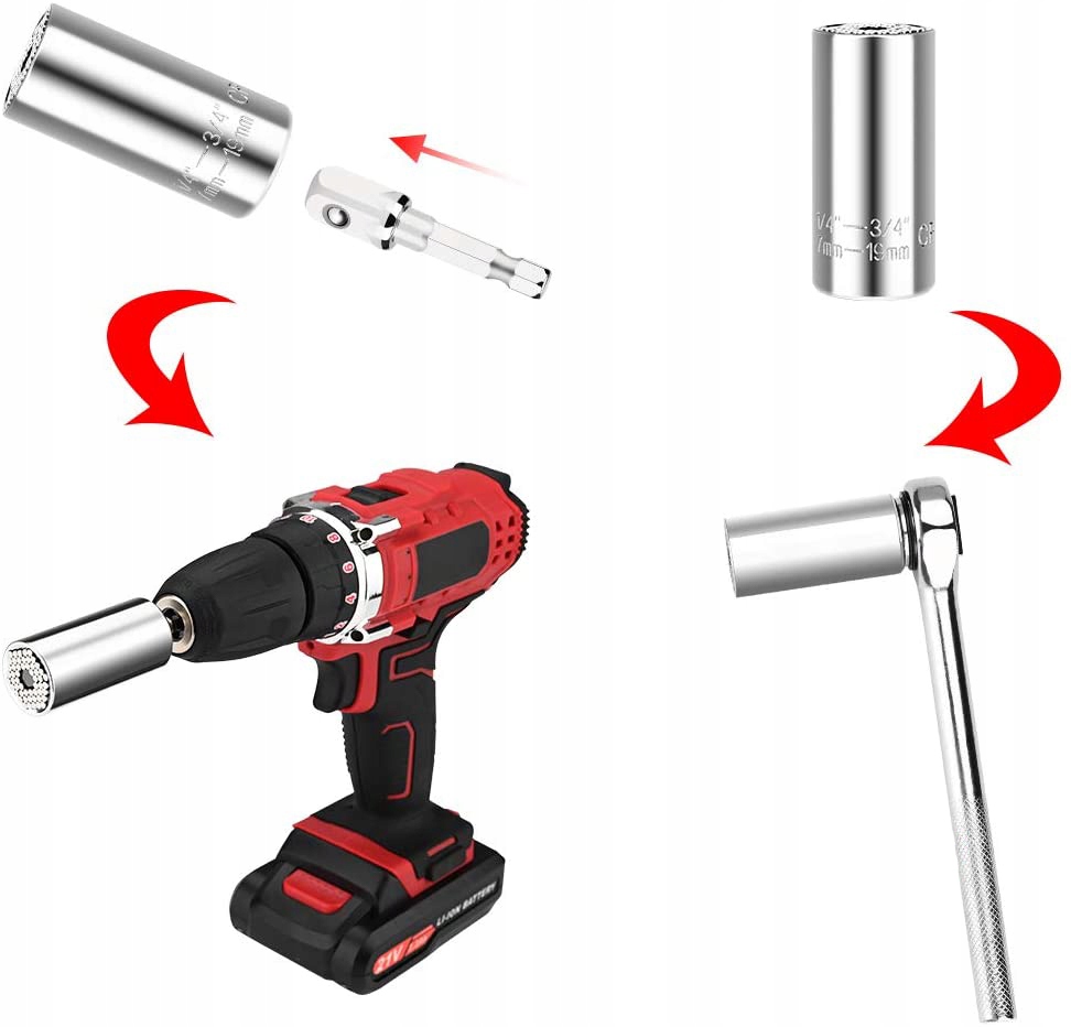 - Адаптер 3/8"позволяет установить насадку на дрель или отвертку