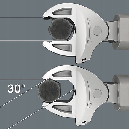 Призма в губках ключа допускает рабочий угол всего 30°.