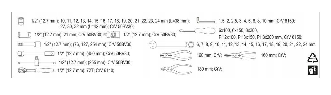 - комбинированные ключи 6, 7, 8, 9, 10, 11, 12, 13, 14, 15, 16, 17, 18, 19, 20, 21, 22, 24 мм"