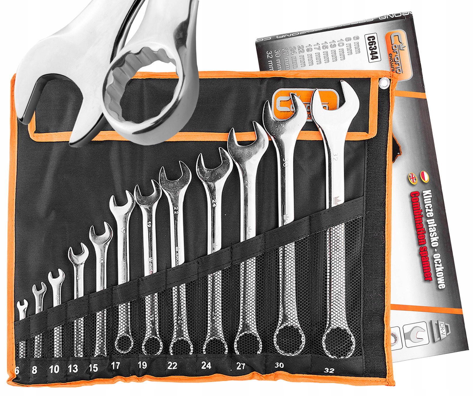 Набор из 12 комбинированных ключей размером от 6 до 32 мм.
