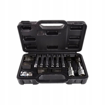 Набор ключей для сборки и разборки генераторов. Ключи изготовлены из высококачественной хромованадиевой стали CrV, что делает их прочными и устойчивыми к повреждениям. Ключи позволяют одновременно открутить винт крепления шкива (с помощью соответствующей биты) и удержать шкив со сцеплением (с помощью специализированной головки).