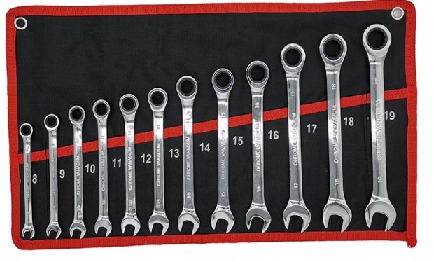 КЛЮЧИ НАКИДНЫЕ С ТРЕЩОТКОЙ 8-19мм 12 ШТ. КОМПЛЕКТ С ЧЕХОЛОМ