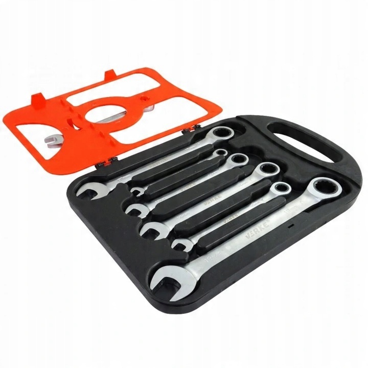 Набор комбинированных ключей с трещоткой ( 72 зуба) изготовлены из прочной хромованадиевой CrV стали. В комплект входят ключи самых популярных размеров. Ключи идеально подходят для профессиональных автосервисов и мастерских, а также для домашних гаражей.