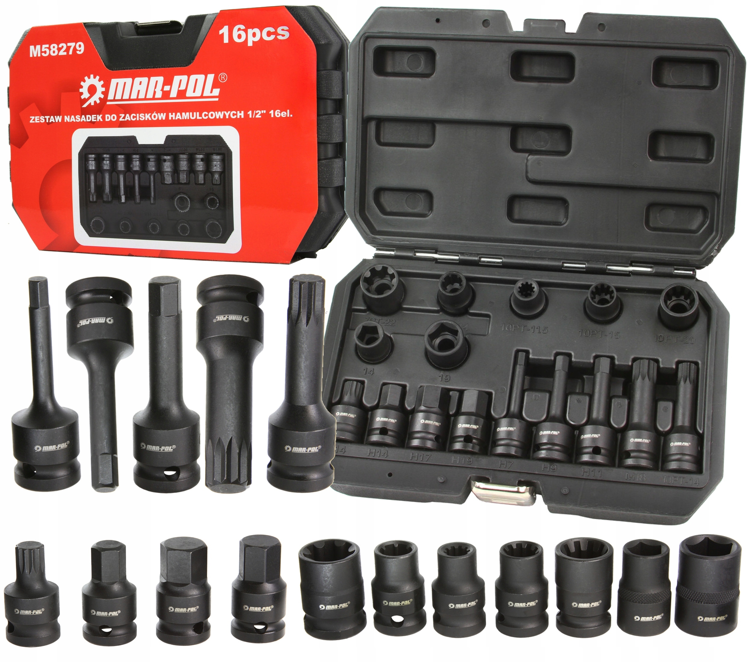 ГОЛОВКИ ГОЛОВКИ ДЛЯ ТОРМОЗНЫХ СУППОРТОВ 1/2" НАБОР УДАРНЫХ ГОЛОВОК 16 ЭЛЕМЕНТОВ.