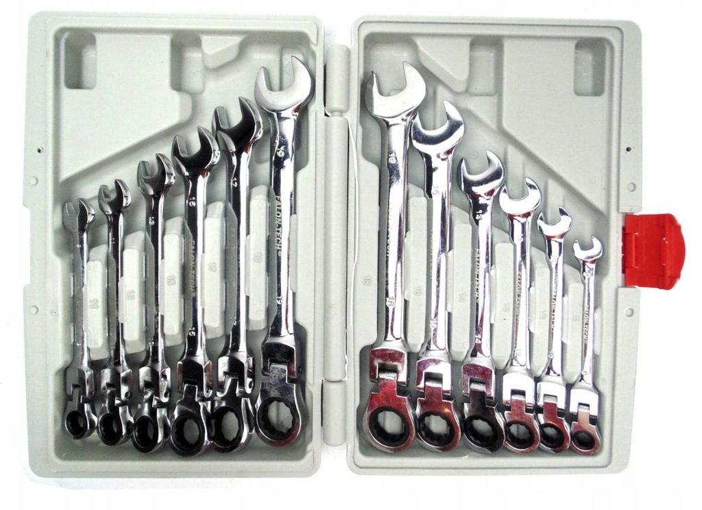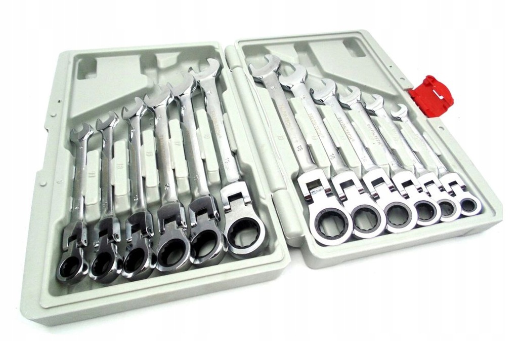 - 12 складных ключей с храповым механизмом типоразмеров: 8, 9, 10, 11, 12, 13, 14, 15, 16, 17, 18, 19 мм.