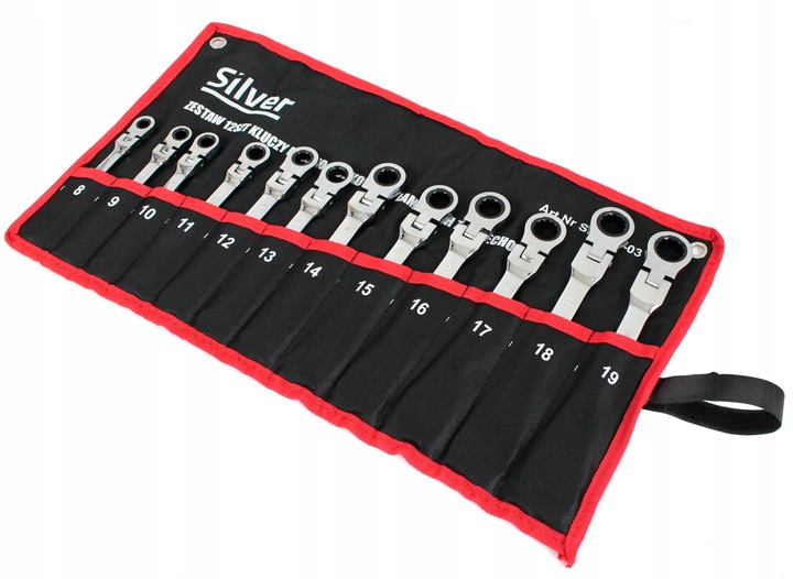 НАКОЛЬНЫЕ КЛЮЧИ С ТРЕЩОТКОЙ 8–19 12e НАБОР СЕРЕБРЯНЫХ РАЗРЫВНЫХ КЛЮЧЕЙ