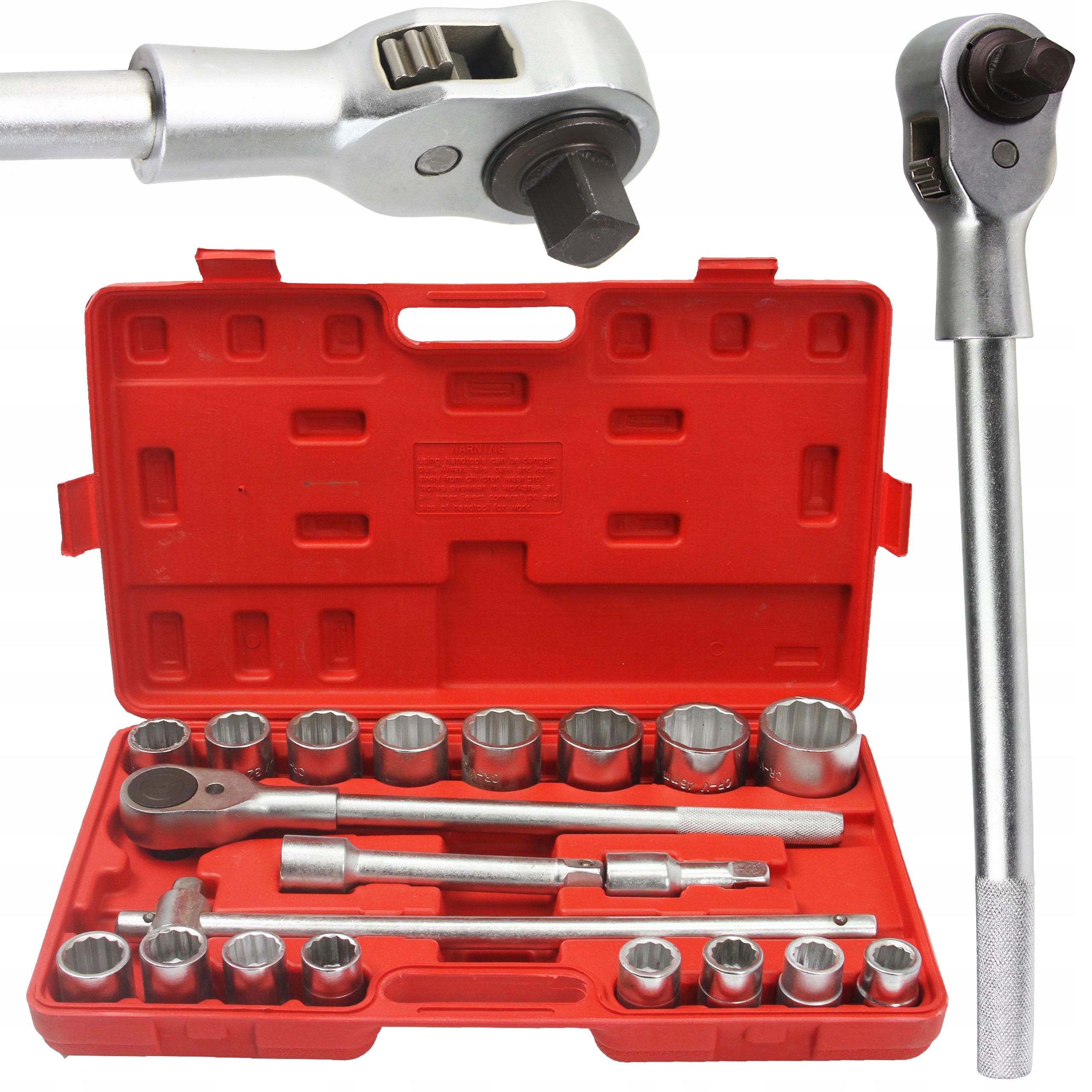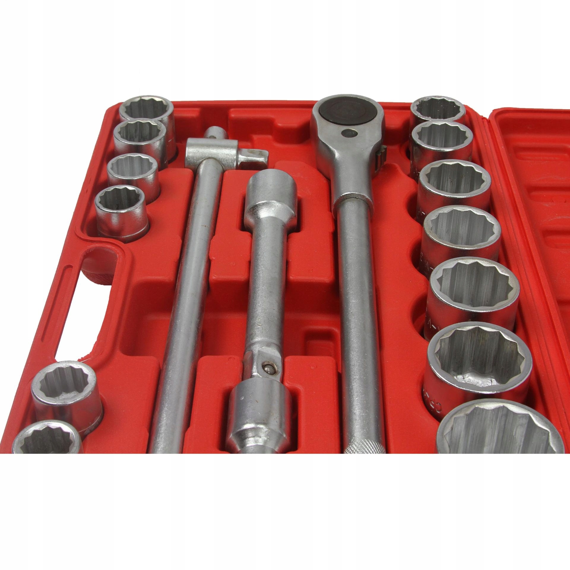 Профессиональный набор торцевых ключей 3/4". Они идеально подходят для больших грузовиков и сельскохозяйственных машин, изготовлены из прочных материалов, что обеспечивает их долговечность. Незаменимые в каждой автомастерской головки такого размера помогут отремонтировать грузовую или сельскохозяйственную технику. Идеально подходит для ослабления или затягивания больших винтов. Все розетки и переходники находятся в практичном чемоданчике. Набор состоит из 21 элемента.