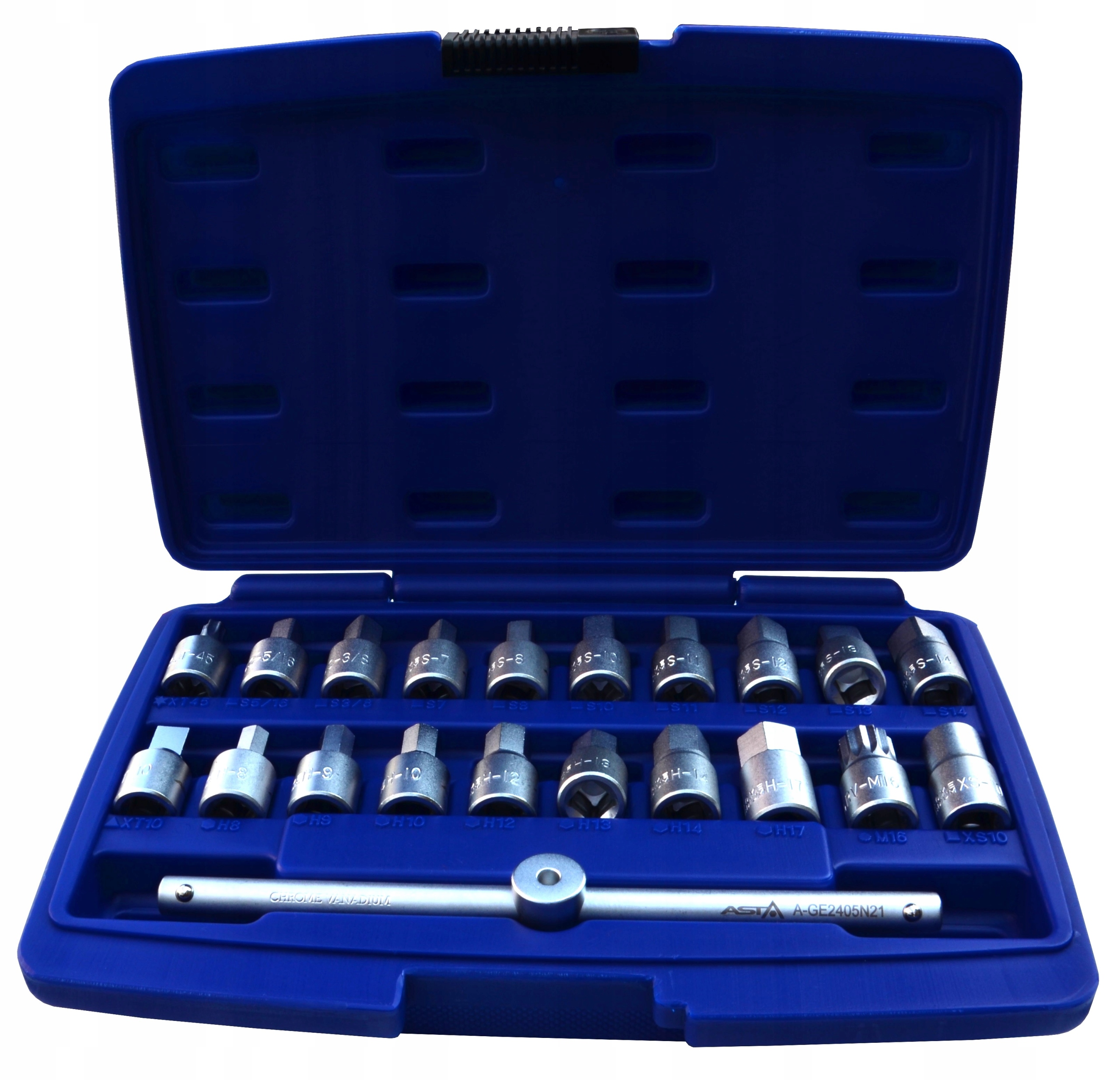 ТОРЦОВЫЕ КЛЮЧИ ДЛЯ МАСЛЯНЫХ ПРОБОК - НАБОР 21 шт. АСТА A-GE2405N21