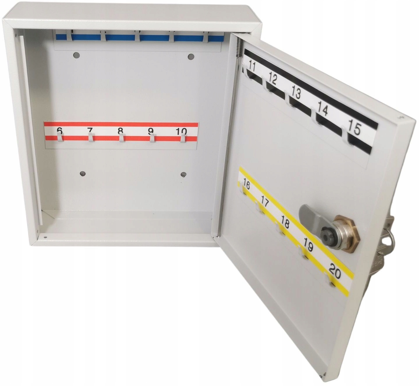 Шкафы для ключей — отличный продукт, который позволяет упорядоченно хранить большее или меньшее количество ключей. Кто из нас не сталкивался с проблемой носить с собой брелок? Благодаря нашей продукции вы легко сможете обеспечить спокойствие и порядок, ведь все ключи вы сможете разместить в одном месте. Широкий ассортимент шкафов для ключей дает нам решения для каждого, независимо от количества ключей. От самых маленьких шкафов, рассчитанных на хранение 5 или 10 ключей, до средних и больших, вмещающих до 200 ключей. Наши шкафы можно разделить на два типа по полосам с крючками.