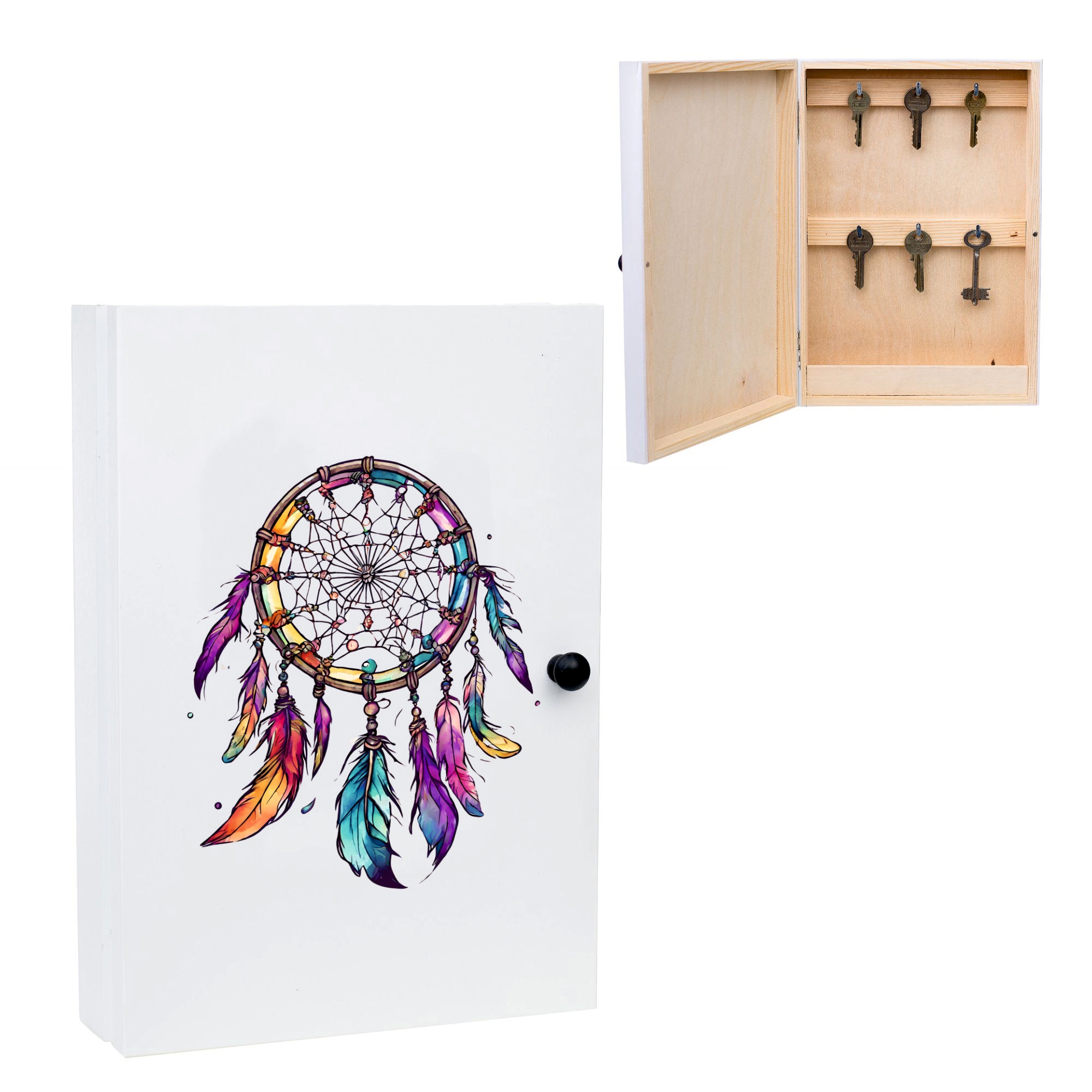 Я представляю вам необычную коробку с ключом, которая не только удержит ваши ключи в порядок, но и принесет немного волшебства в вашу жизнь. Эта коробка была украшена отпечатками, изображающим прекрасного ловца мечты, символизируя защиту от плохих снов и привлечение позитивной энергии.