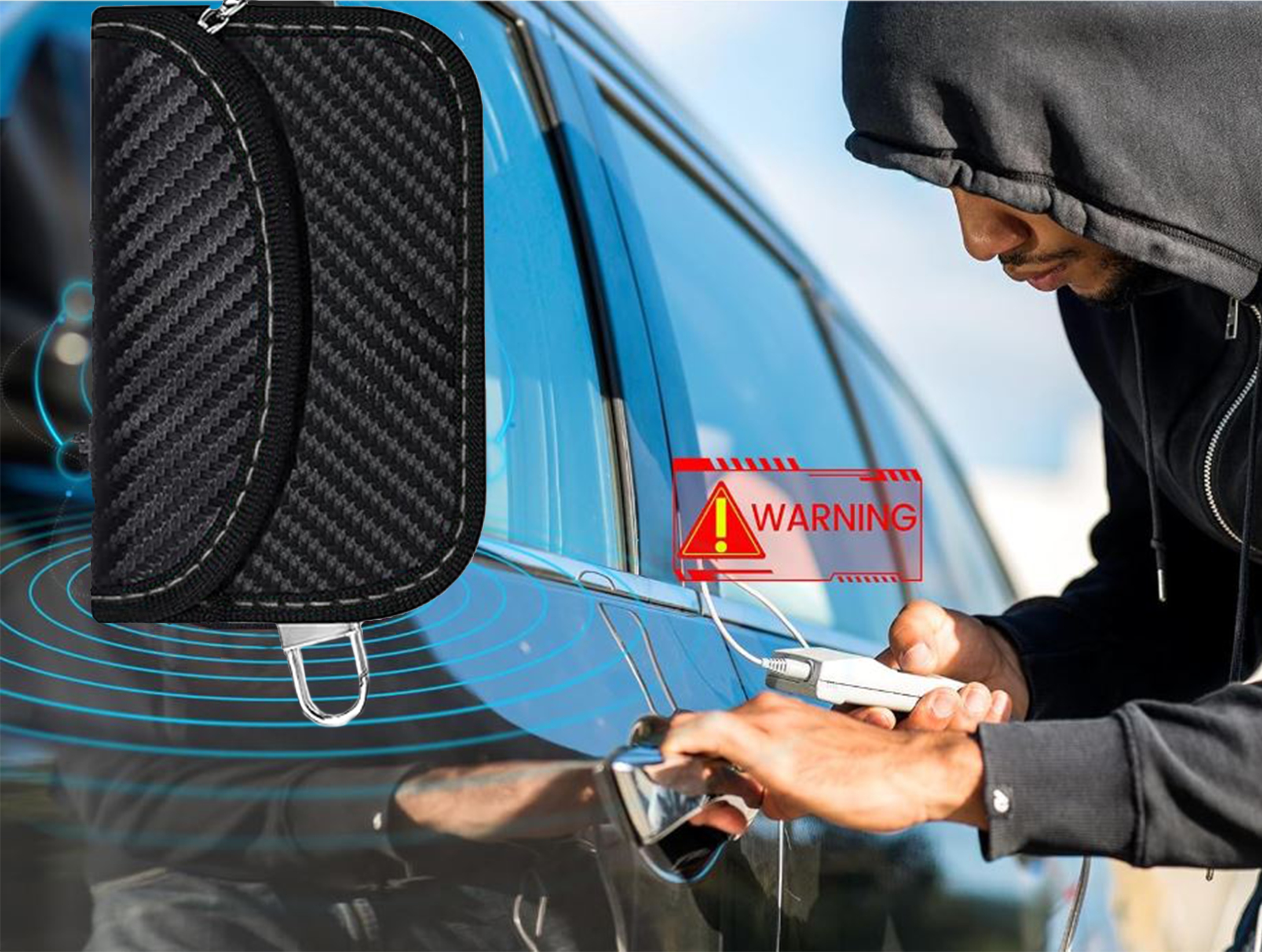 ▶ Случай без ключа - это простой, но эффективный способ защитить от этого типа кражи. Специальный слой, блокирующий сигнал RFID и радиоволны, предотвращает перехват сигнал, благодаря которой ключи безопасны, даже когда они находятся рядом с автомобилем или у входной двери. Это решение позволяет вам спать мирно, зная, что ваш автомобиль защищен от современных методов кражи.