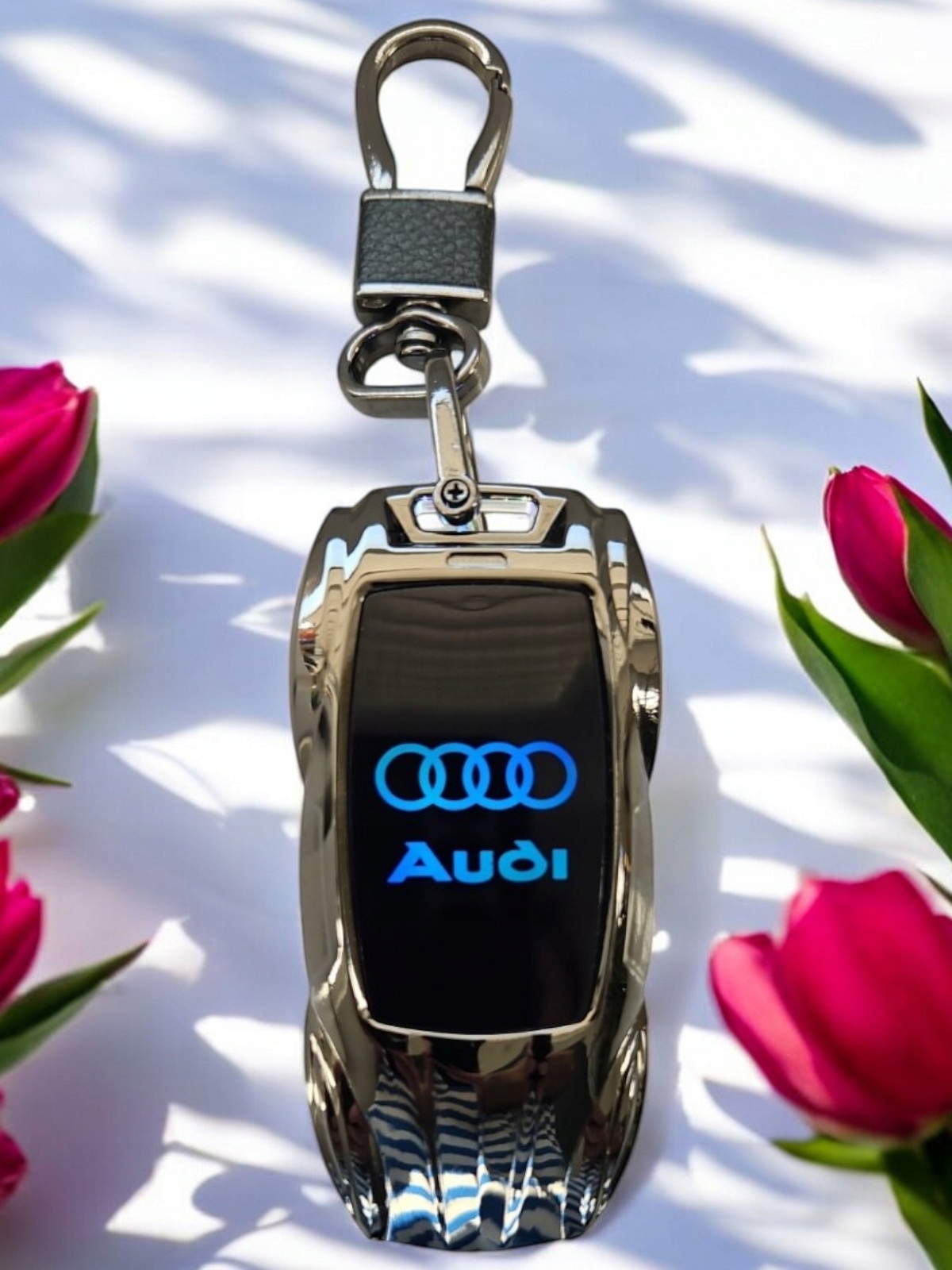 - Элегантный дизайн: Логотип Audi выделен на элегантном черном фоне. встроенный в фонарик.