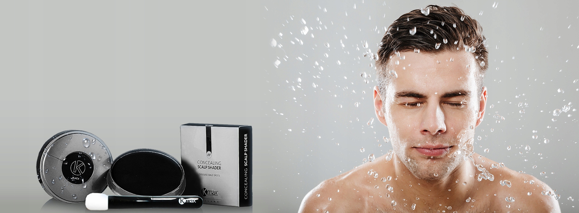Kmax Scalp Topical Shader очень плотно удерживает даже самые маленькие волоски и устойчив к: ветру, дождю, поту, влаге. С ним можно даже плавать!