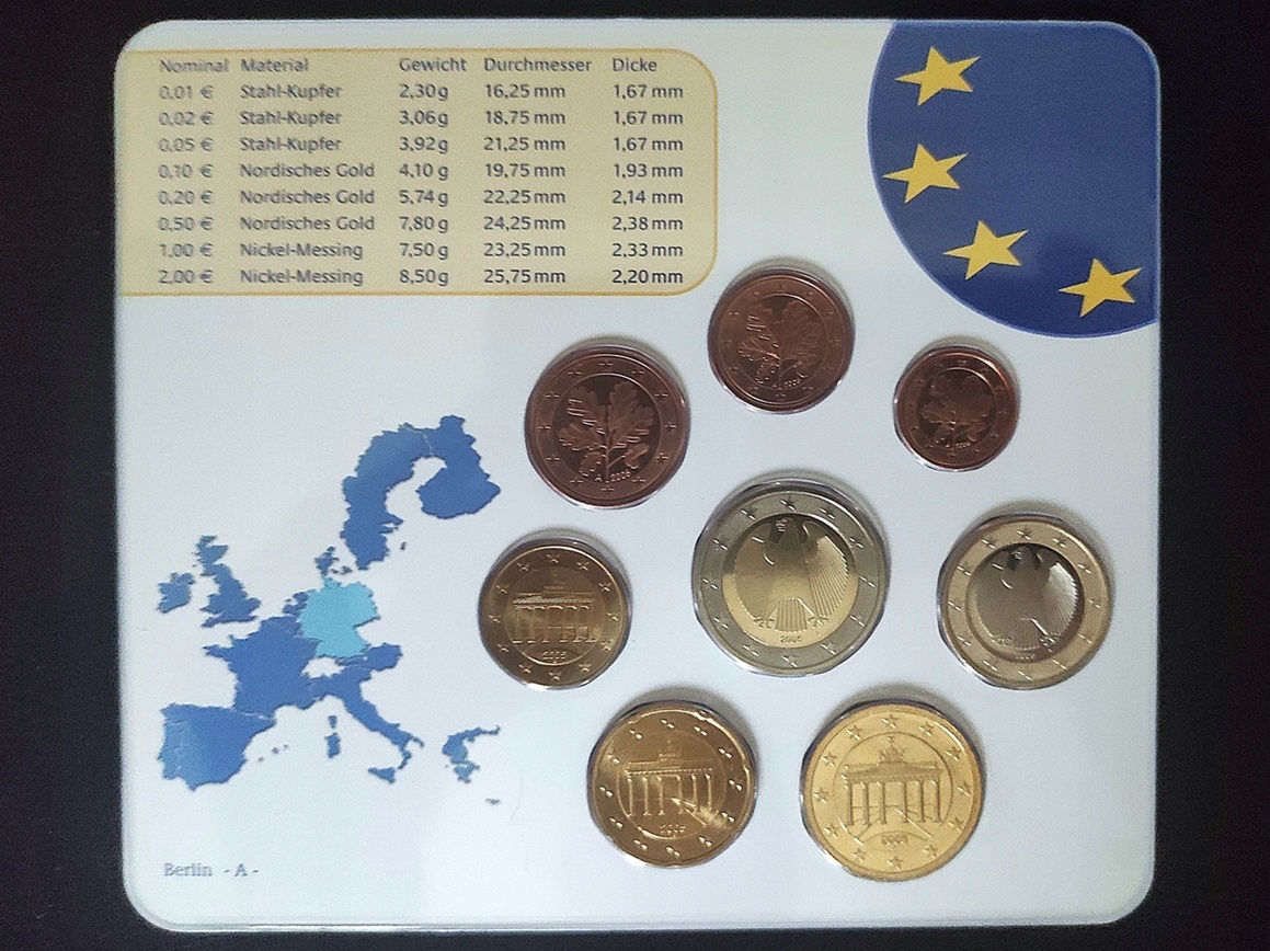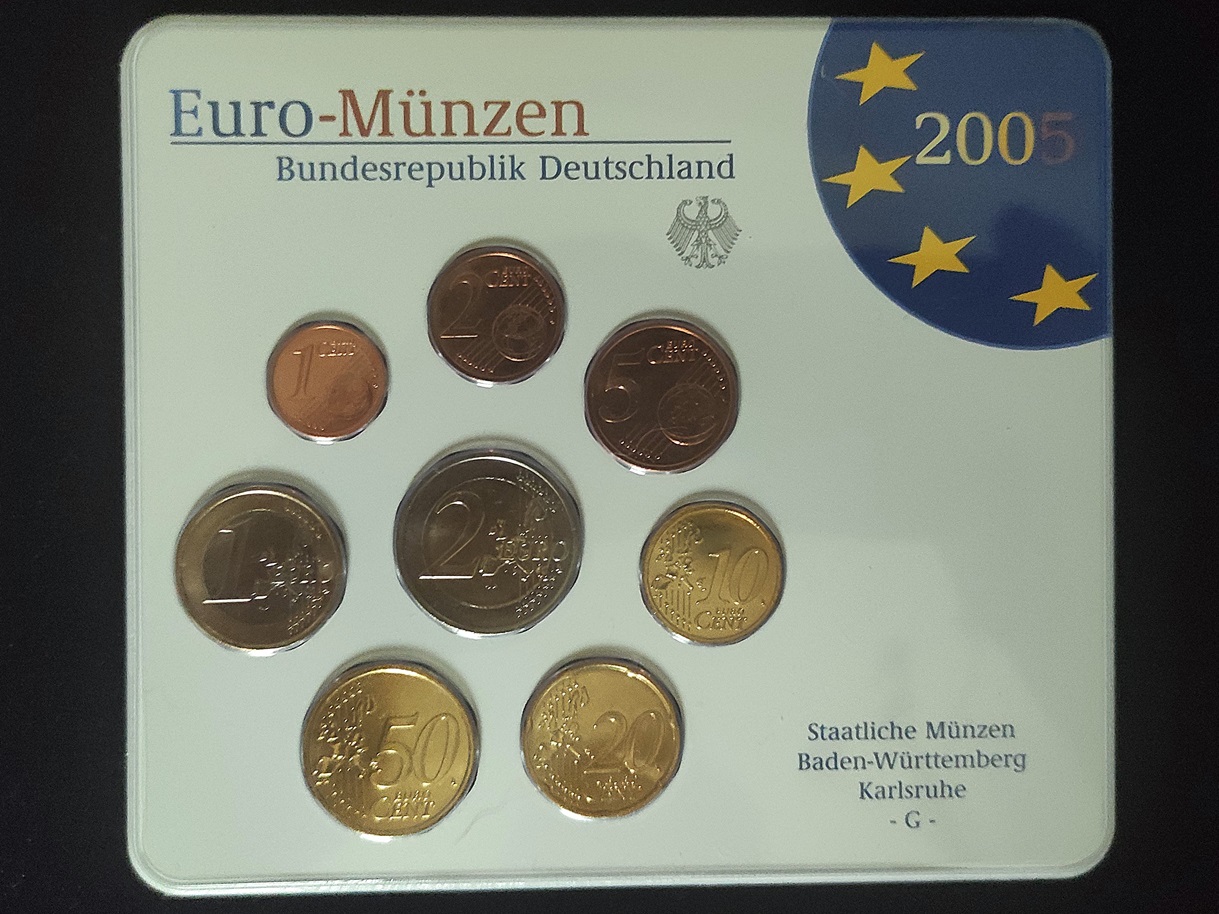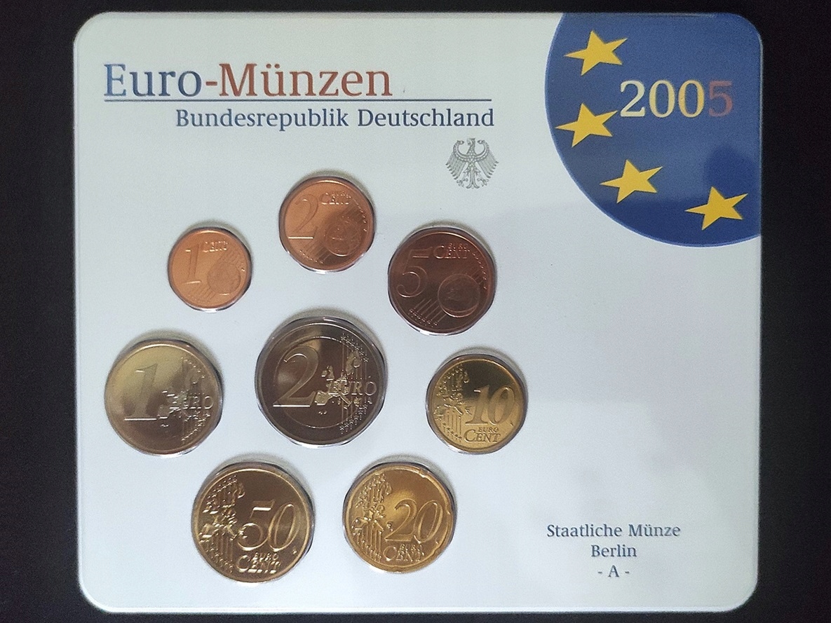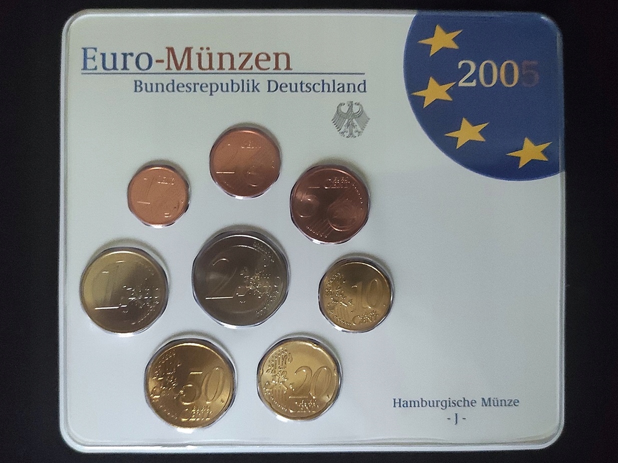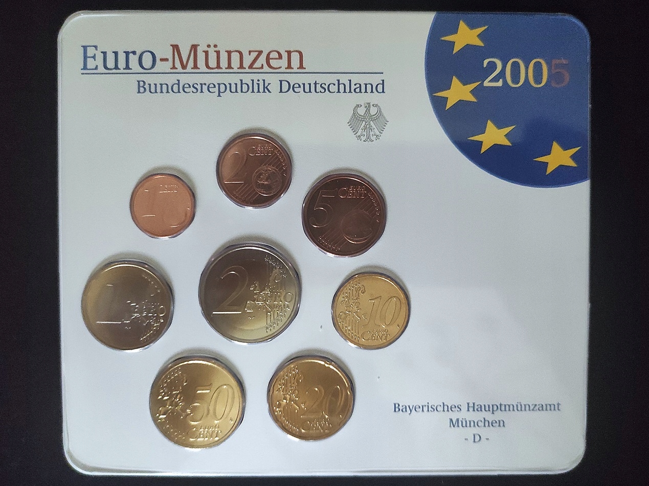KMS Niemcy 2005 ADFGJ, zestaw od 1 centa do 2 euro (8 monet, 3,88 euro)