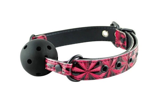Кляп изготовлен из безопасного для кожи ПВХ. Оснащен черным пластиковым шариком с отверстиями для облегчения дыхания диаметром 44 мм.