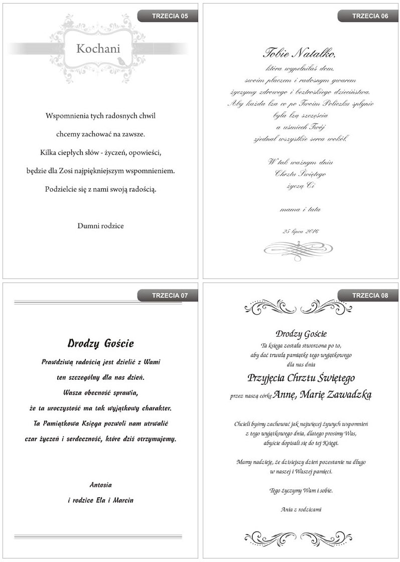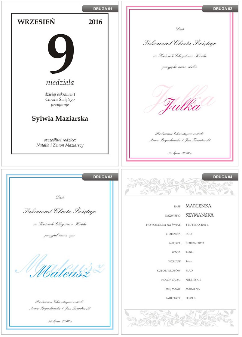 - все данные для заполнения в выбранном шаблоне (например, имя ребенка, дата, родители...)