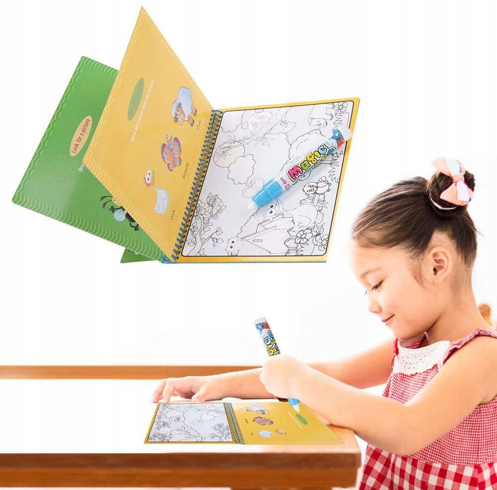 Удобство использования набора – одно из его преимуществ. Благодаря специальному маркеру мы легко находим картинки и, что не менее важно, нет возможности испачкать руки или пролить на себя воду. Еще очень важно то, что это многоразовый комплект. Когда картинки высохнут, их можно будет снова раскрасить. Время высыхания рисунка составляет от нескольких до десятка минут.