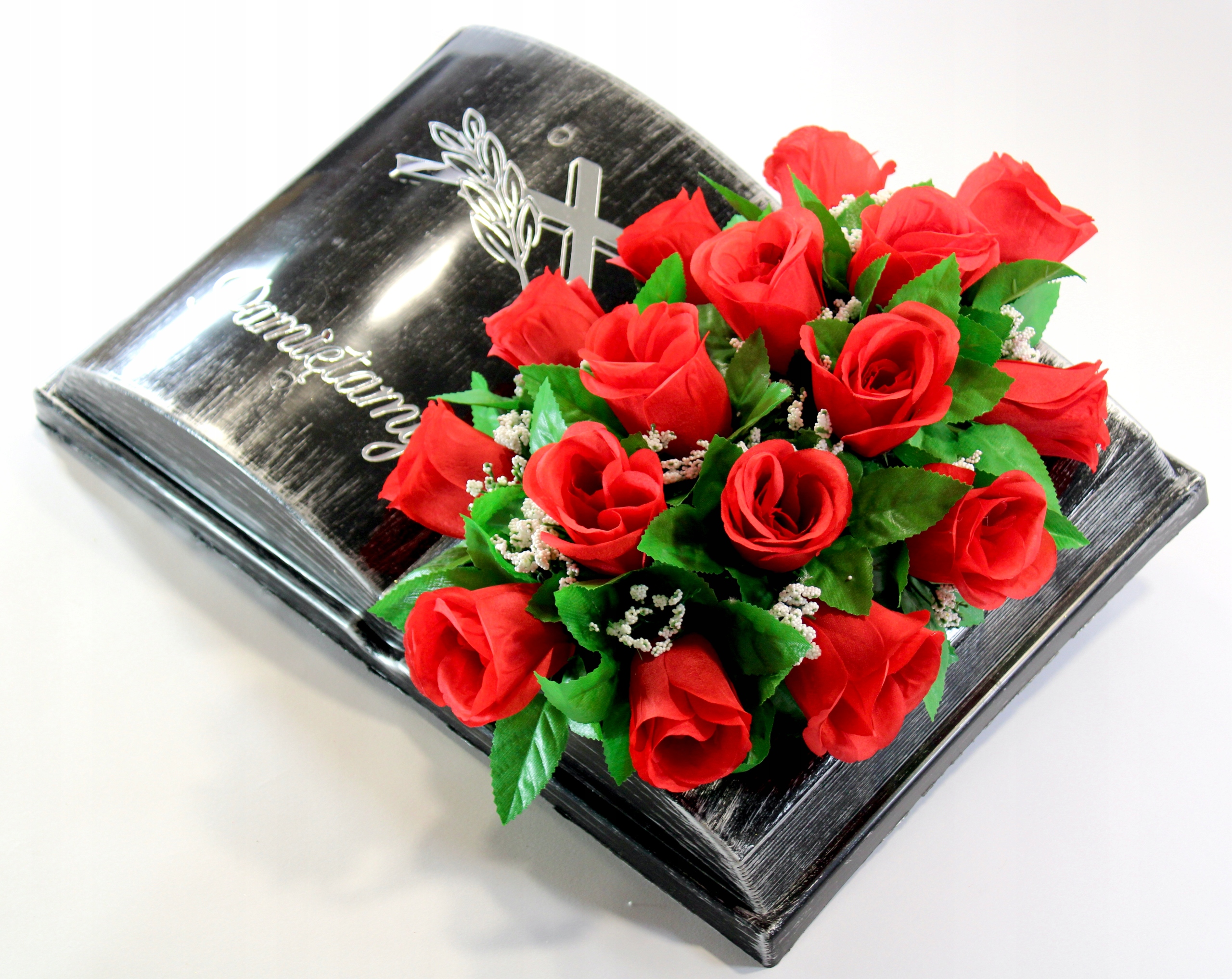 КНИГА для надгробного світлодіодного оформлення ЧЕРВОНІ ТРОЯНДИ КНИГА чорна зі срібними літерами