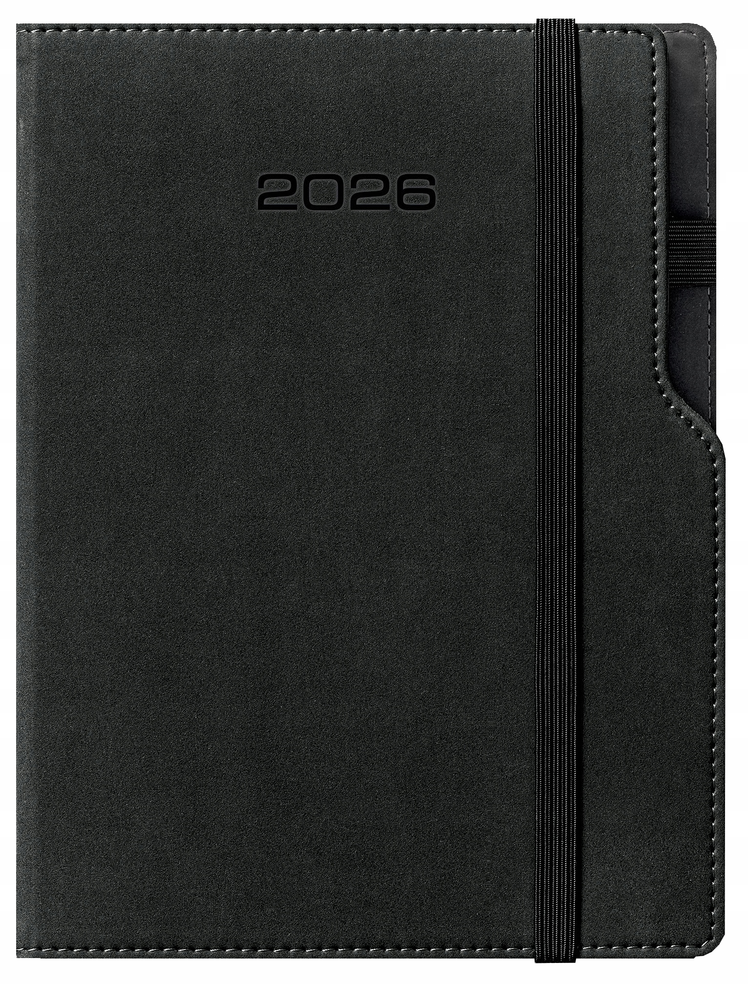 КНИГА-КАЛЕНДАРЬ A5 DAILY 2026 РУЧКА-ЛАСТИК-ПЛАНИРОВКА ЧЕРНАЯ