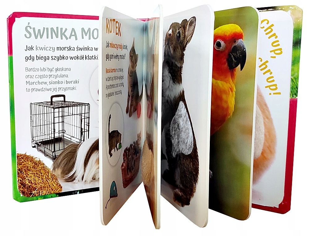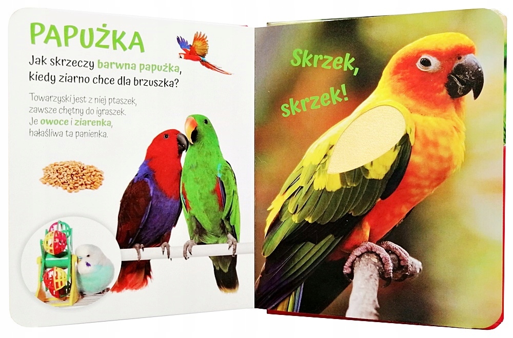 - самые важные слова ВЫДЕЛЕНЫ цветом. Каждый малыш будет рад увидеть, каково прикасаться КОШКЕ, КРОЛИКУ или ПОПУГАЮ!
