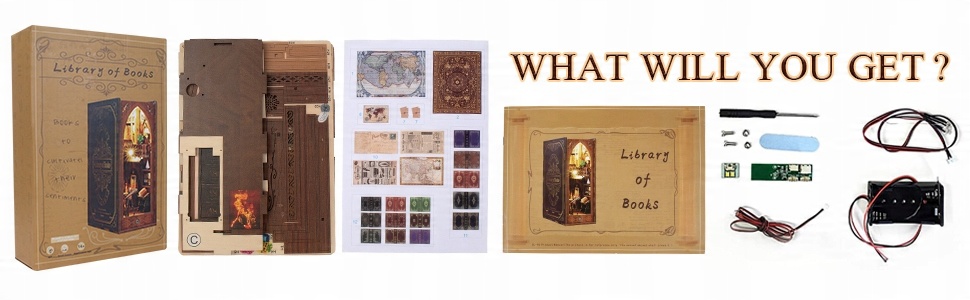 Удивительный подарок: ты все еще боишься выбирать подарок? Этот набор деревянных 3D -головоломок - лучший выбор для любителей книг, поклонников головоломок, семьи и друзей, пар и т. Д. Идеальный день рождения, Рождество, Хэллоуин. Советы: вам нужно приготовить жидкий силиконовый клей самостоятельно и две батареи (тип AA), потому что воздушный транспорт запрещен. Обложка обнаружения и музыкальная коробка не включены в набор. Пожалуйста, проверьте эту информацию перед размещением заказа.