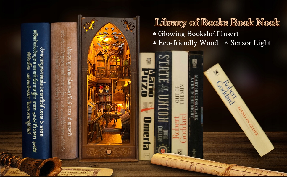 Сделайте угол с книжным украшением вашей полки: набор для создания уголка с книгами сочетает в себе 3D -диораму, угол с книгами и украшениями в одном. Чата - это миниатюра настоящего дома. Вы должны создавать почти все сцены самостоятельно. Элегантное украшение дома, которое будет работать на полке с книгами или на столе. Это выглядит великолепно в темноте, включенная свет.