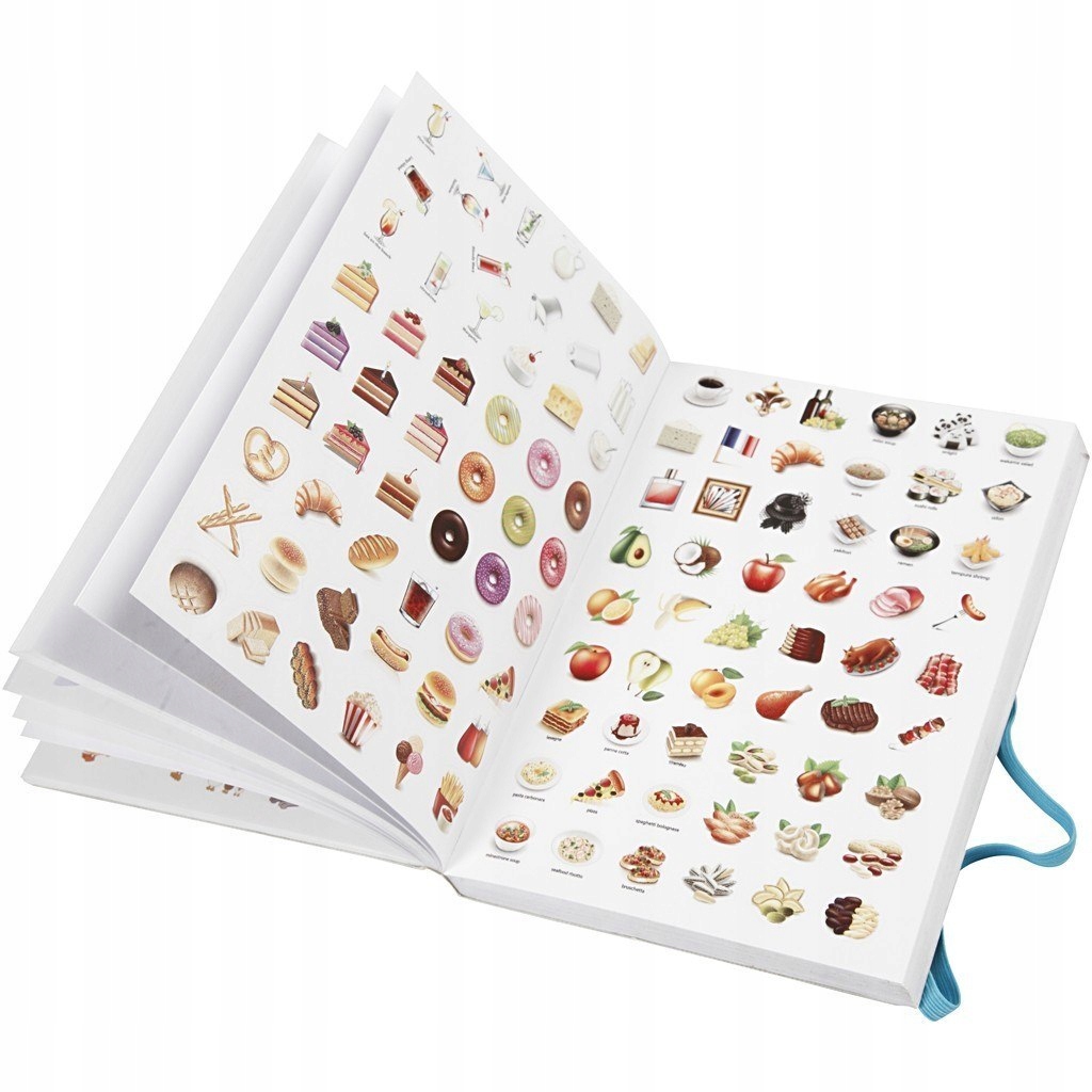 Наклейки на бумаге с клеем. Более 2800 произведений тематически расположены на 80 страницах. В узоры входят животные, смайлики, алфавиты, еда, сердечки и т. д.